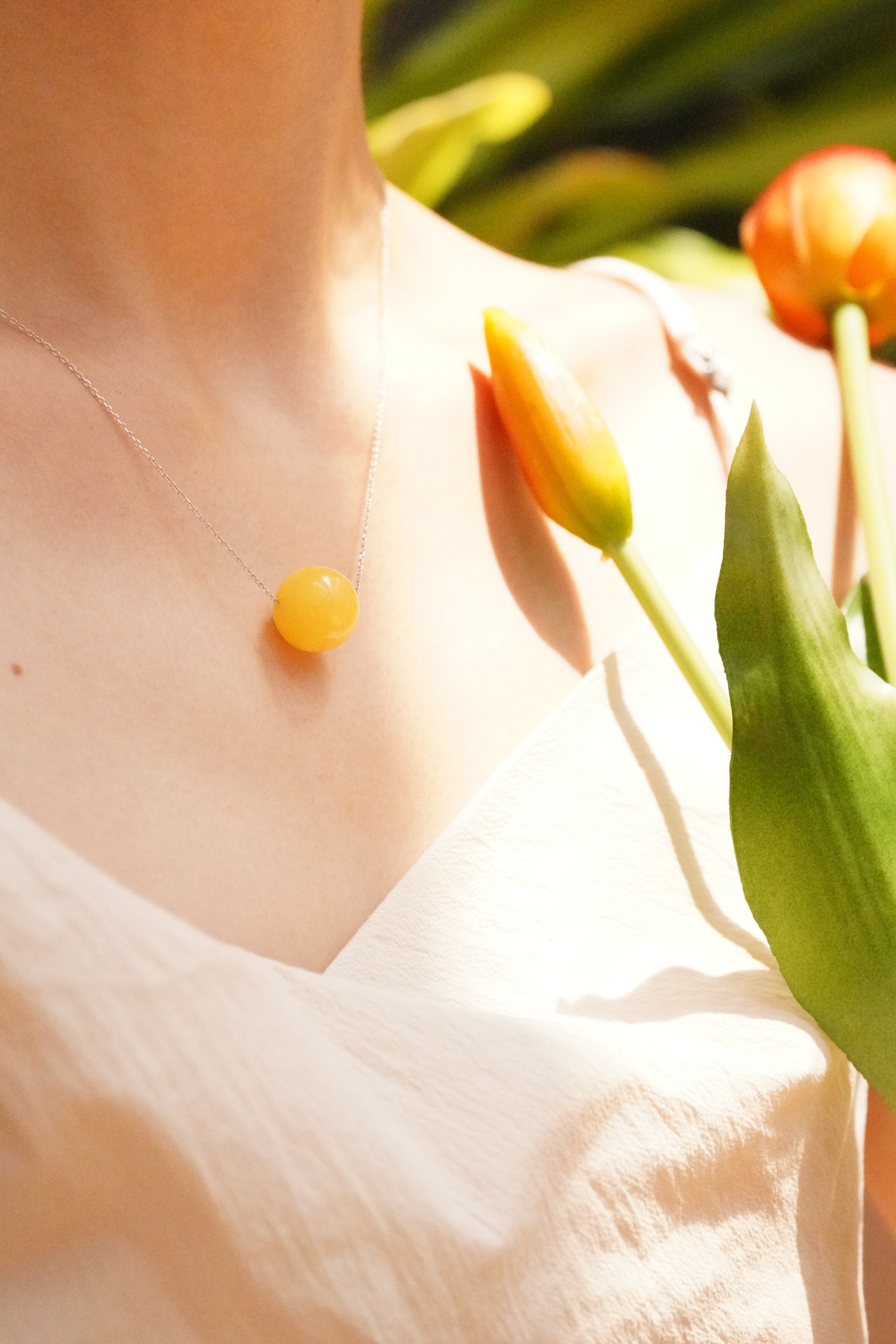 [A29][Amber 호박][Rare]폴란드 고퀄 트레디셔널 컷팅 밀화 구 지름 14mm 925 실버 화이트도금 목걸이