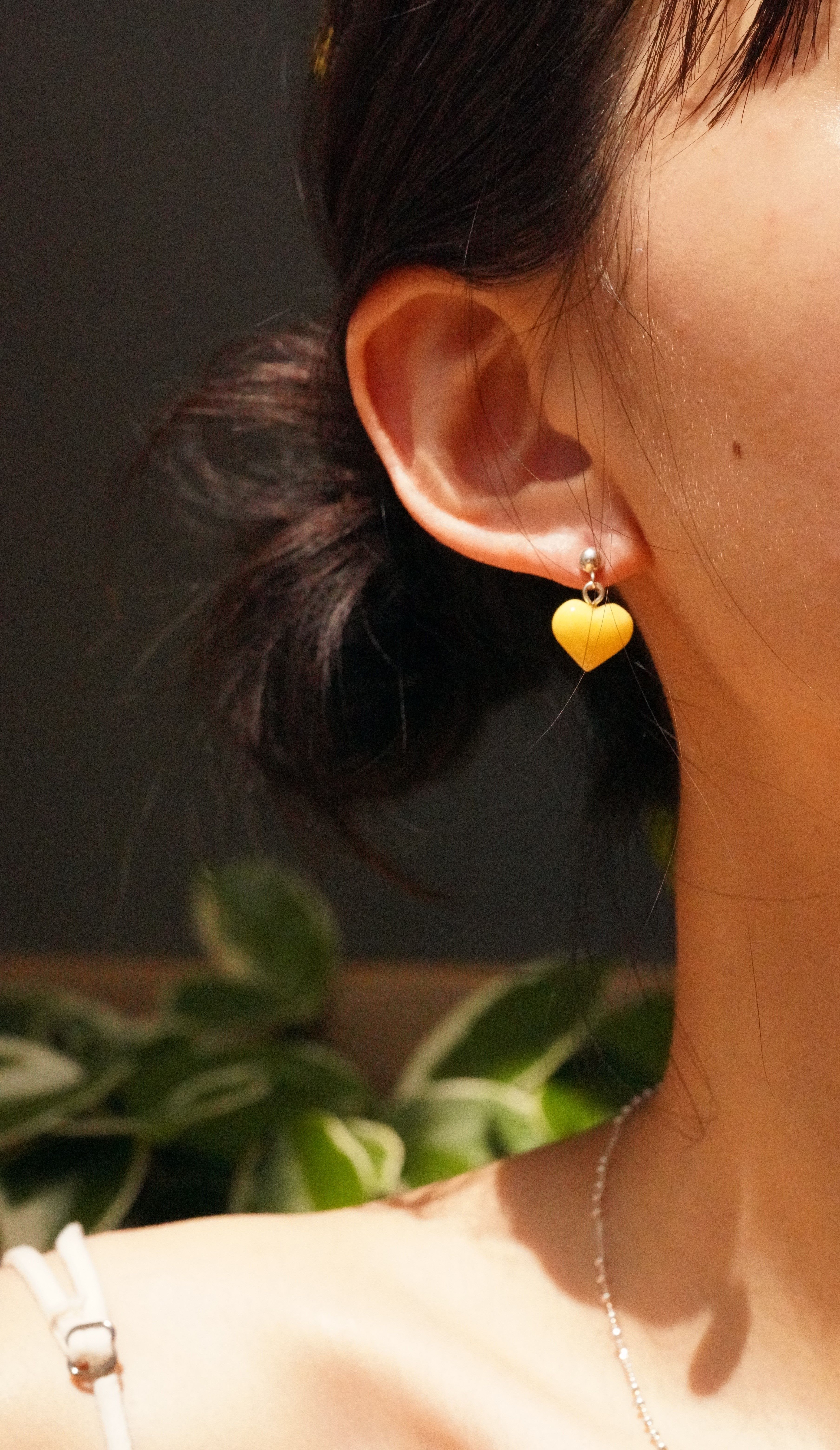 [A43][Amber 호박] 폴란드 트레디셔널 컷팅 밀화 하트 925 실버 귀걸이
