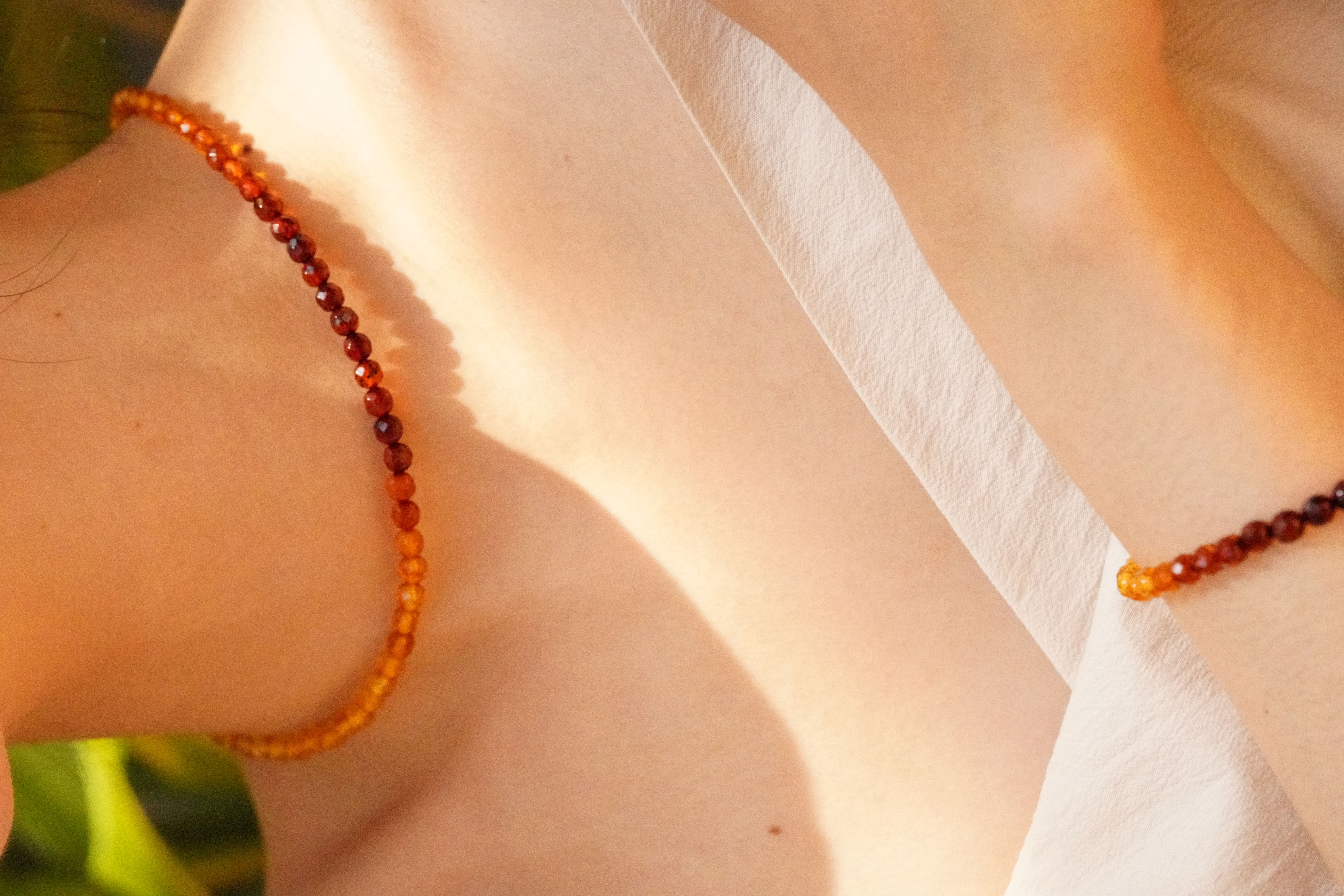 [A75][Amber 호박] 폴란드 금파 그라데이션 초커 925 실버 37+5cm