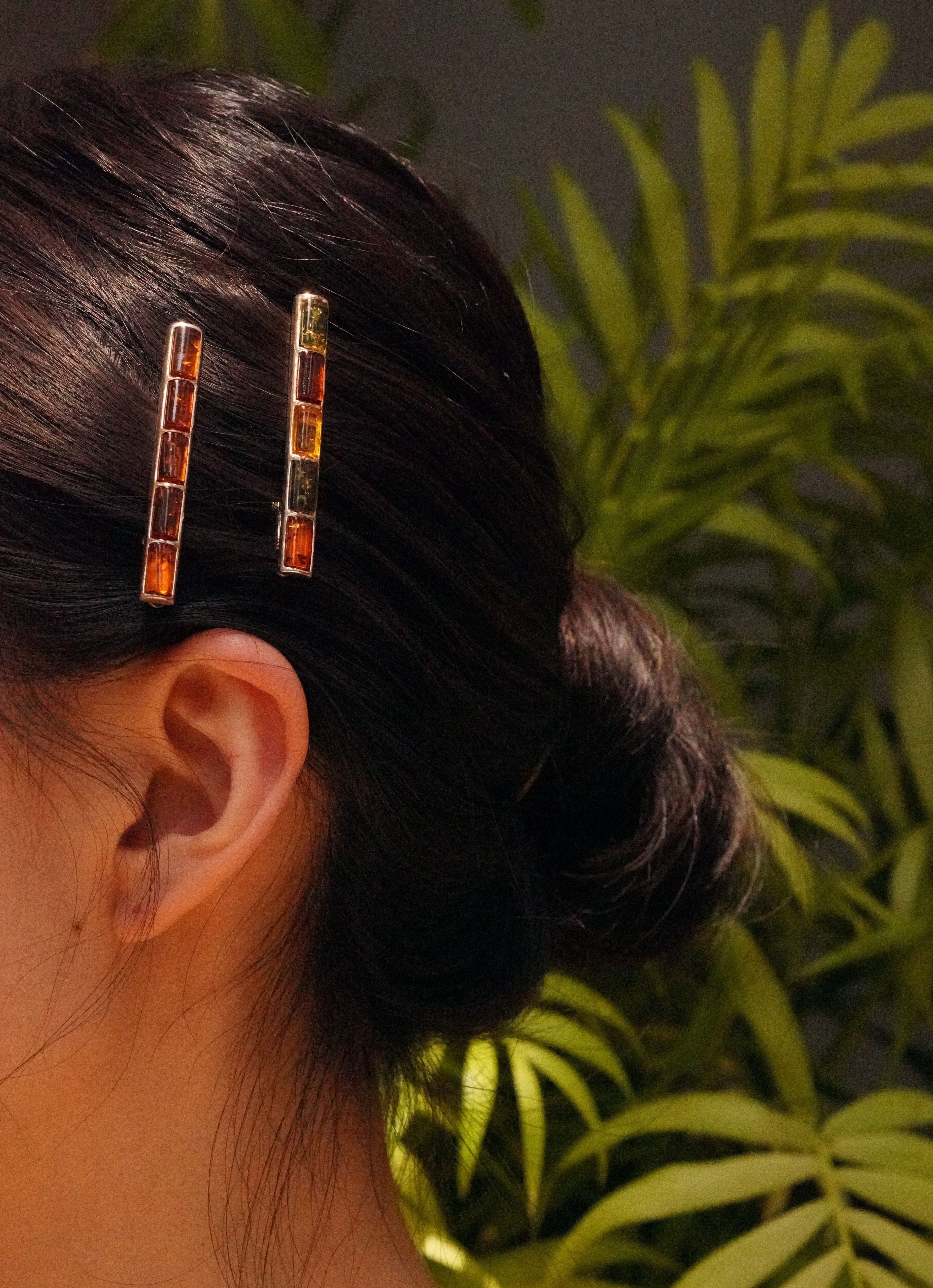 [A61][Amber 호박] 폴란드 트레디셔널 컷팅 금파 925 실버 클립 타이핀 헤어핀
