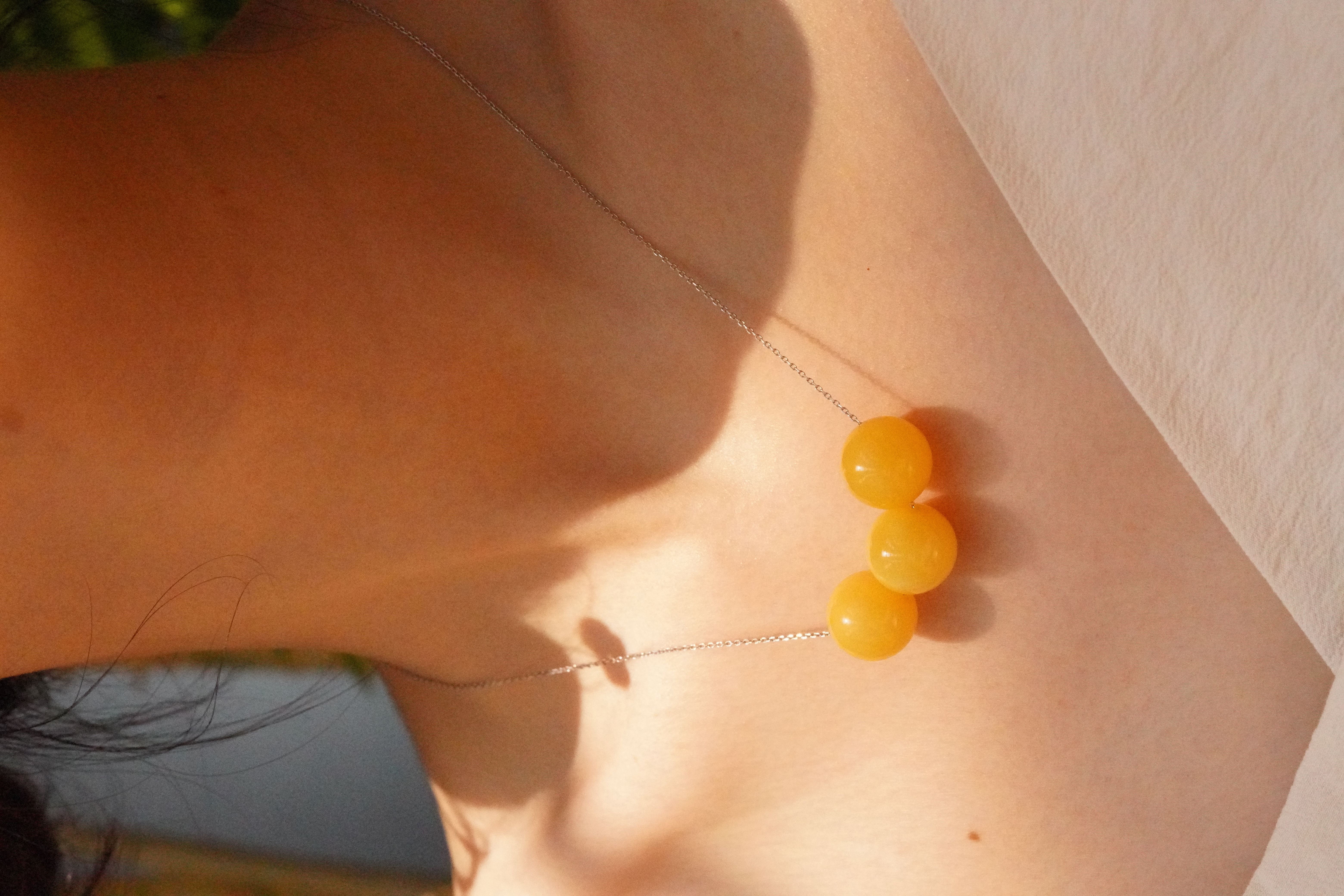 [A34][Amber 호박] 폴란드 밀화 구_13mm 3triple 실버 목걸이 45/50/60cm