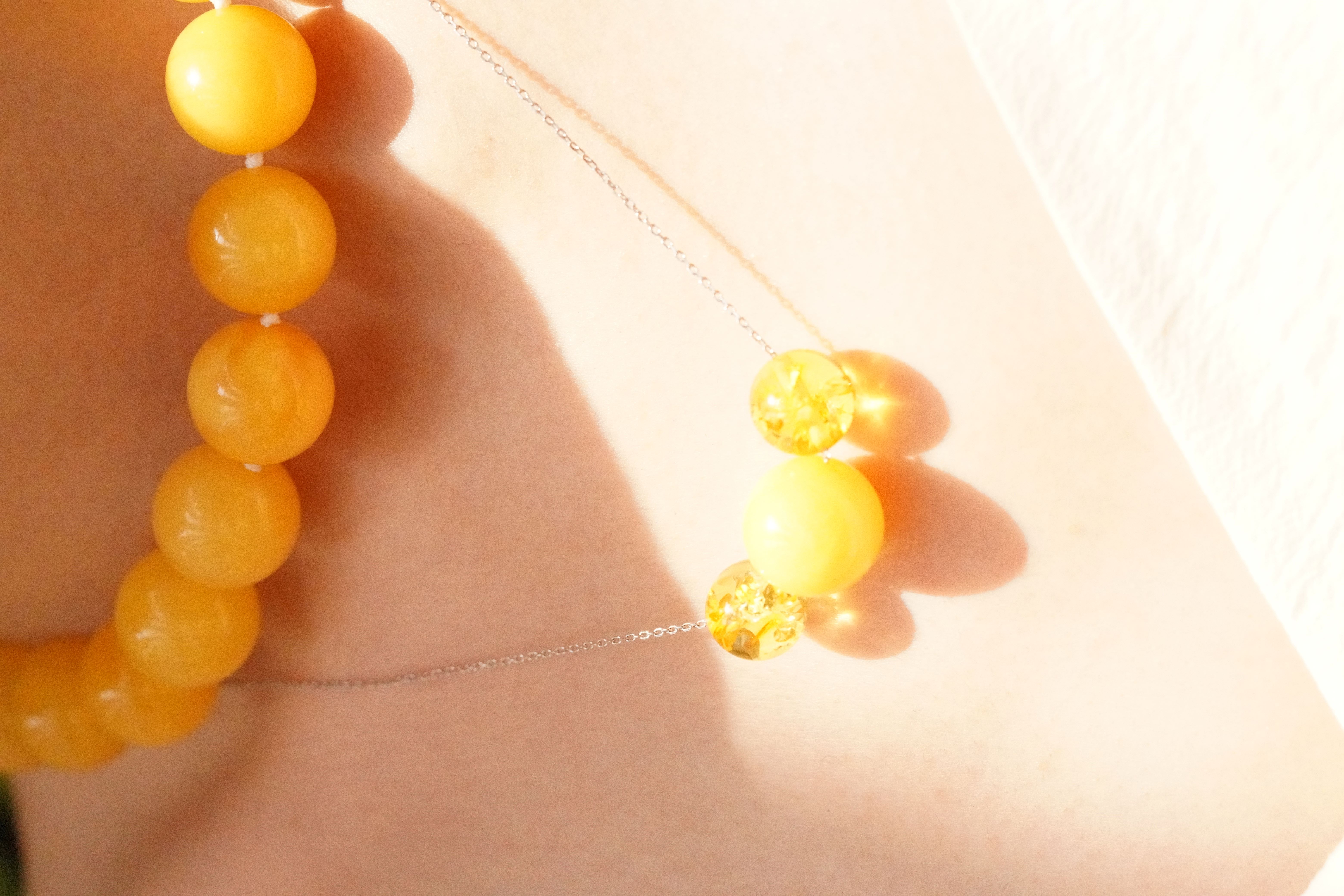 [A33][Amber 호박] 폴란드 금파 + 밀화 925 실버 화이트 도금 목걸이 45/50/60cm