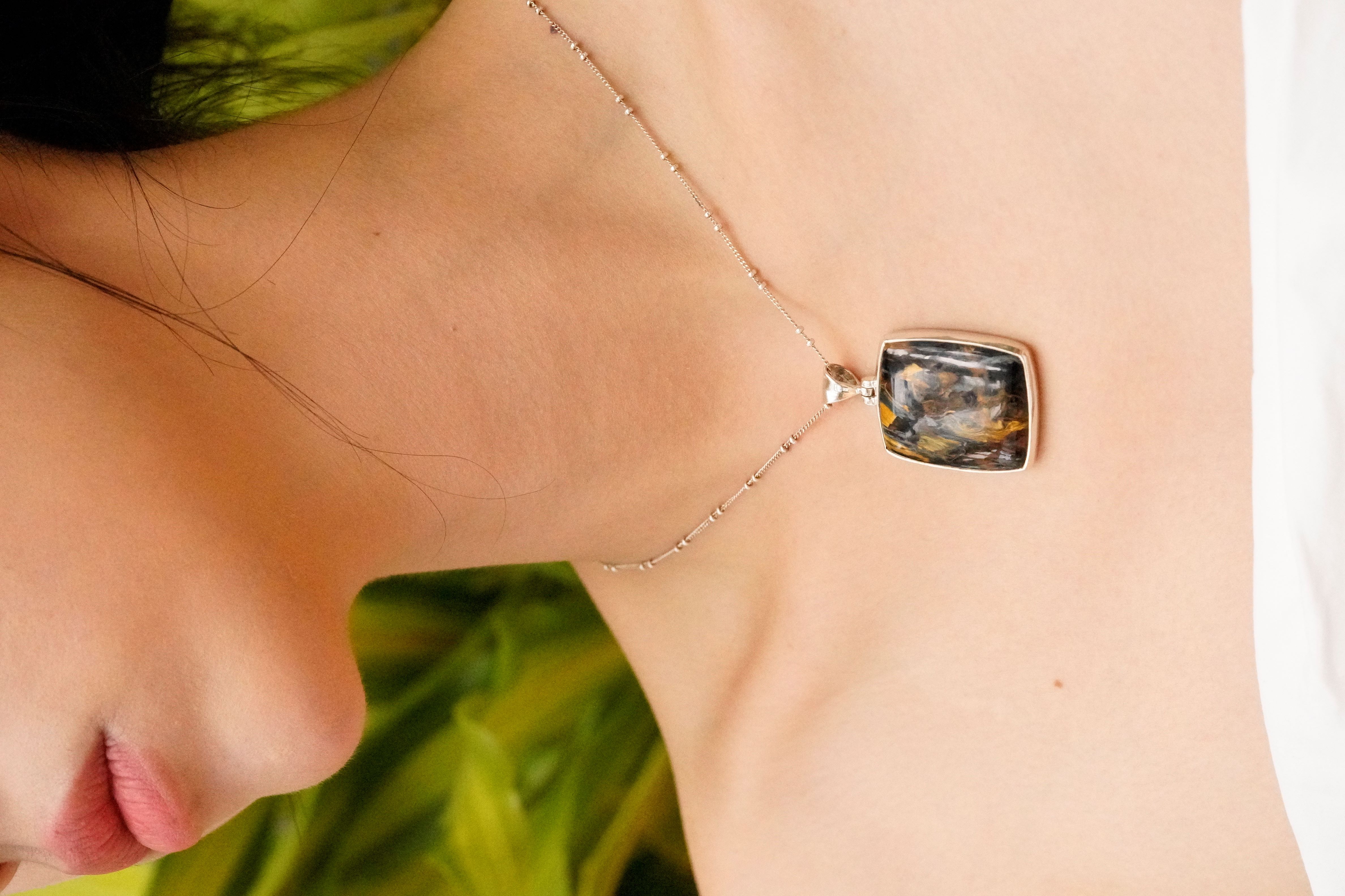 [736][마지막한점] 폭풍석 피터사이트 천연석 925 실버 타원형 펜던트_2.8x4.3cm