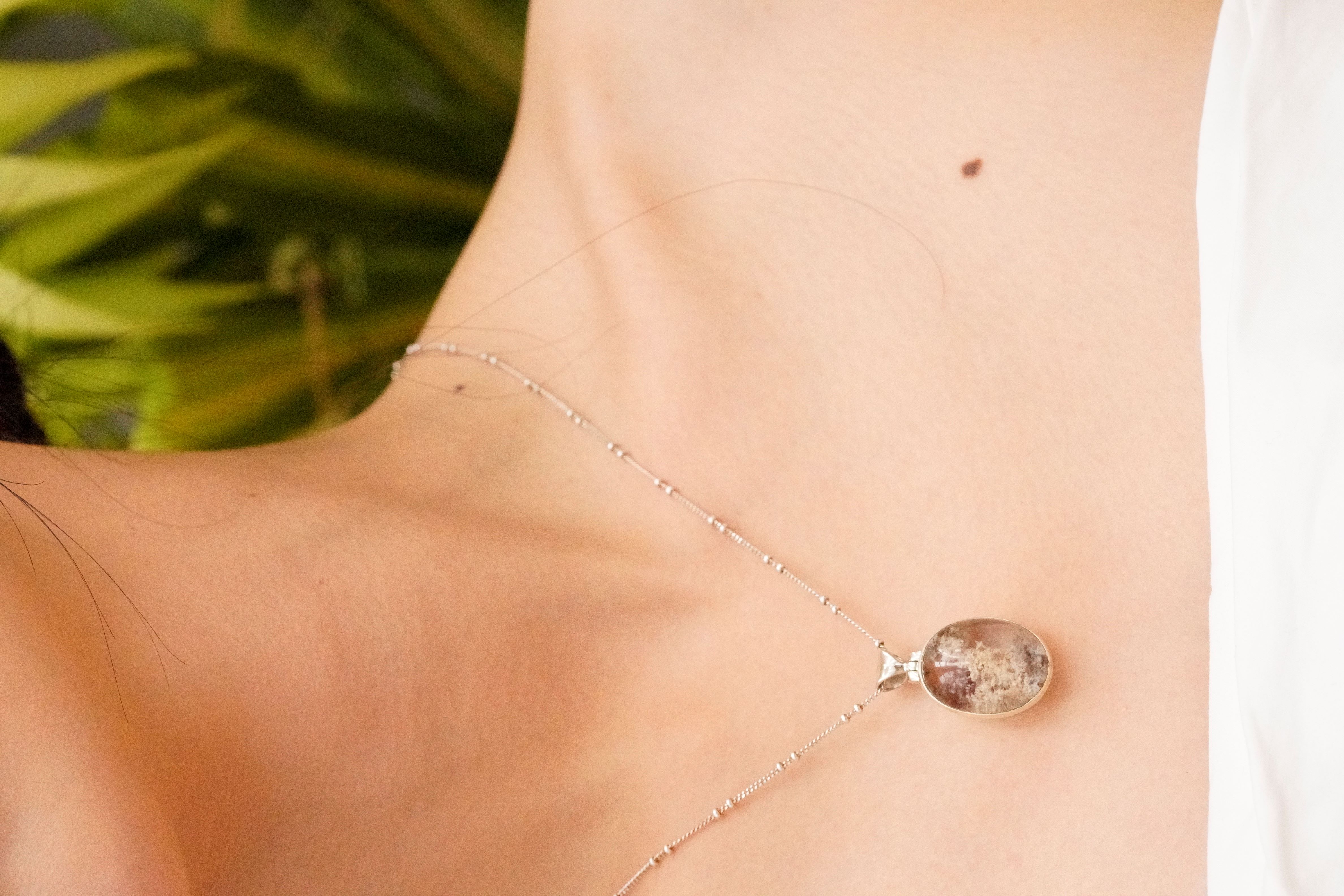 [715][마지막한점] 숲과 바다를 품은 로도라이트 천연석 925 실버 타원형 펜던트_1.8x2.7cm
