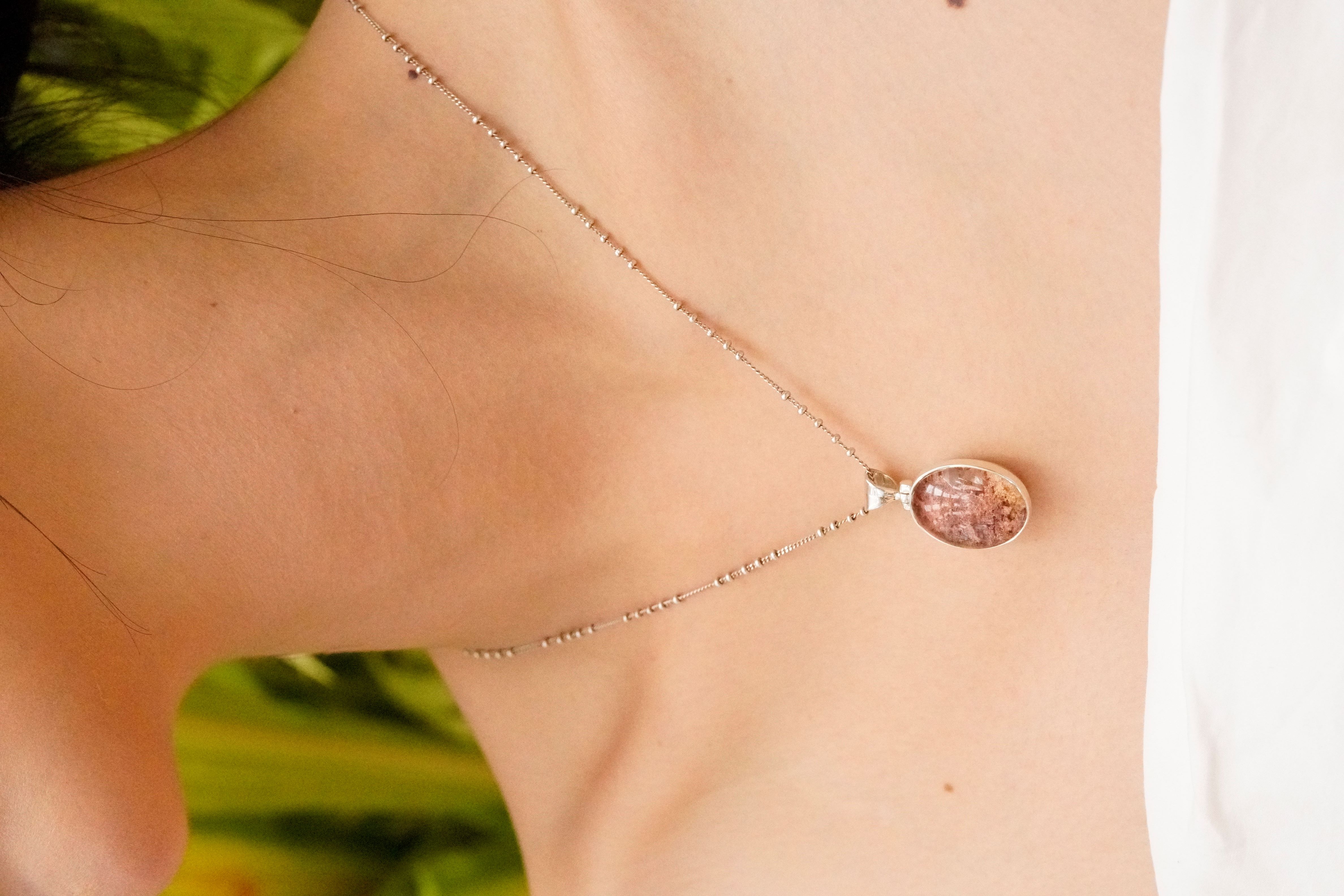 [709][마지막한점] 숲과 바다를 품은 로도라이트 천연석 925 실버 타원형 펜던트_1.6x2.7cm