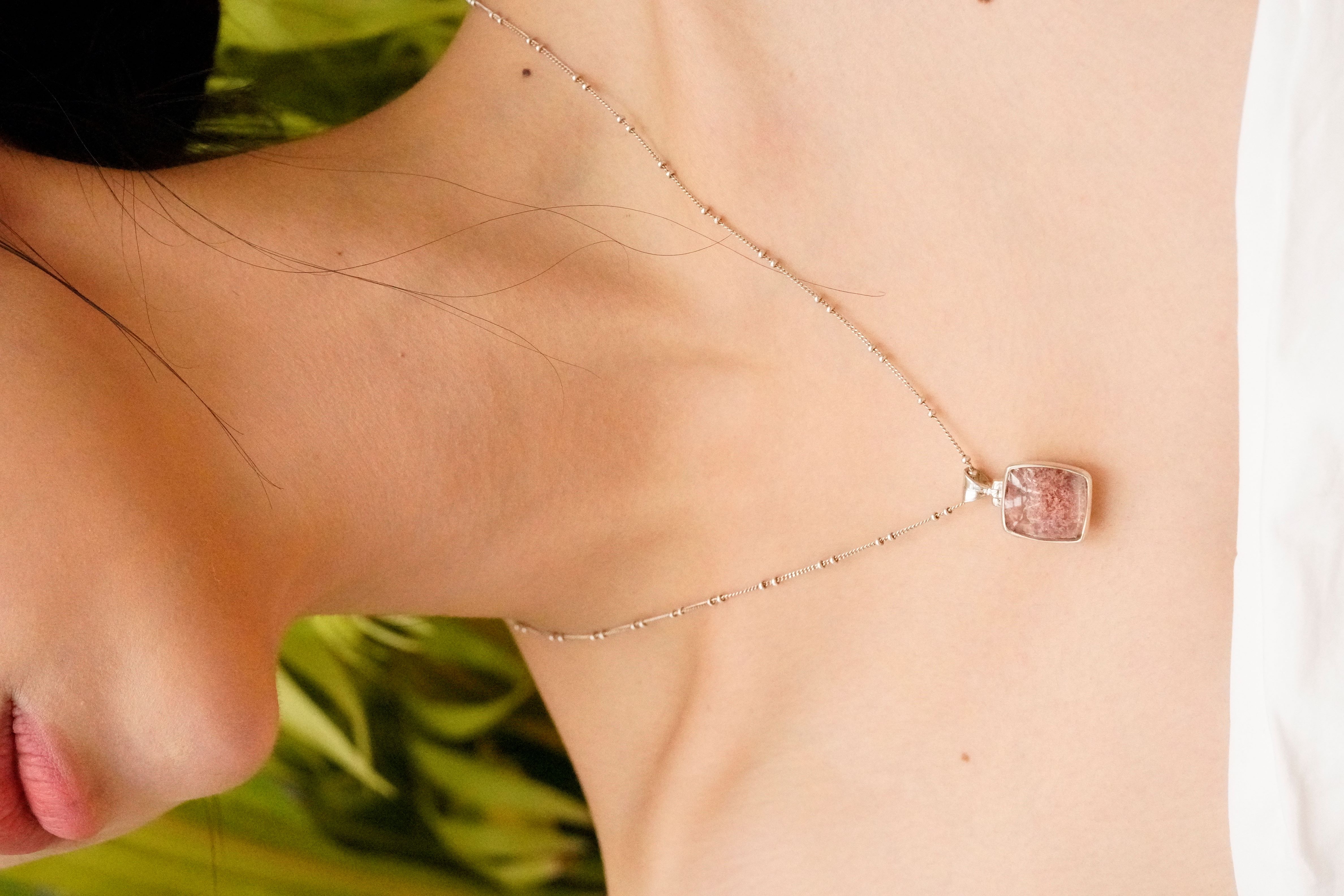 [704][마지막한점] 숲과 바다를 품은 로도라이트 천연석 925 실버 사각 펜던트_1.5x2.5cm