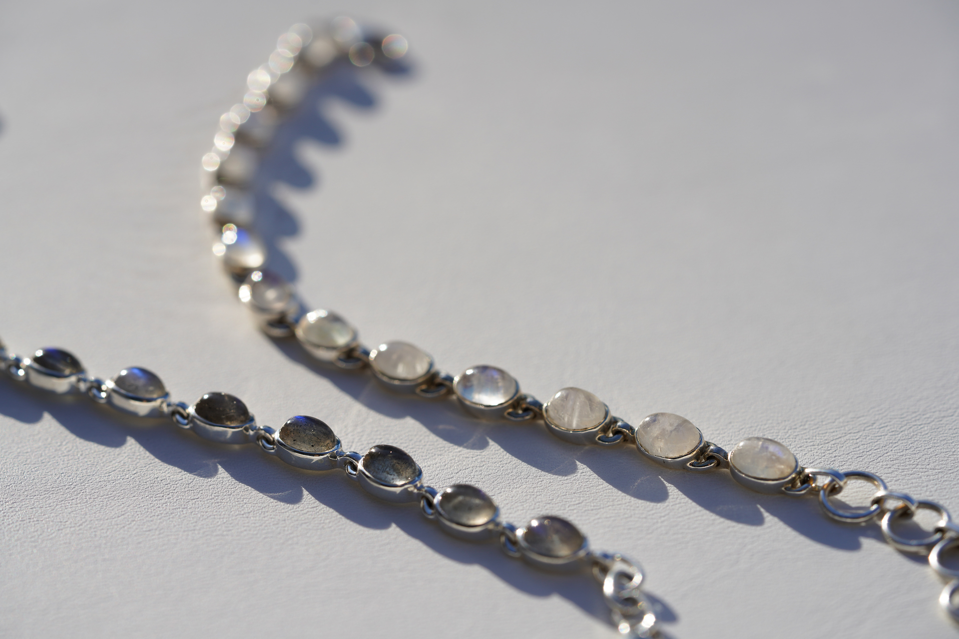 [692] 블루빛이 매력적인 문스톤 래브라도라이트 천연석 원석 팔찌 925 실버 폭 5x7mm 최대 20cm(15.5+4.5cm)