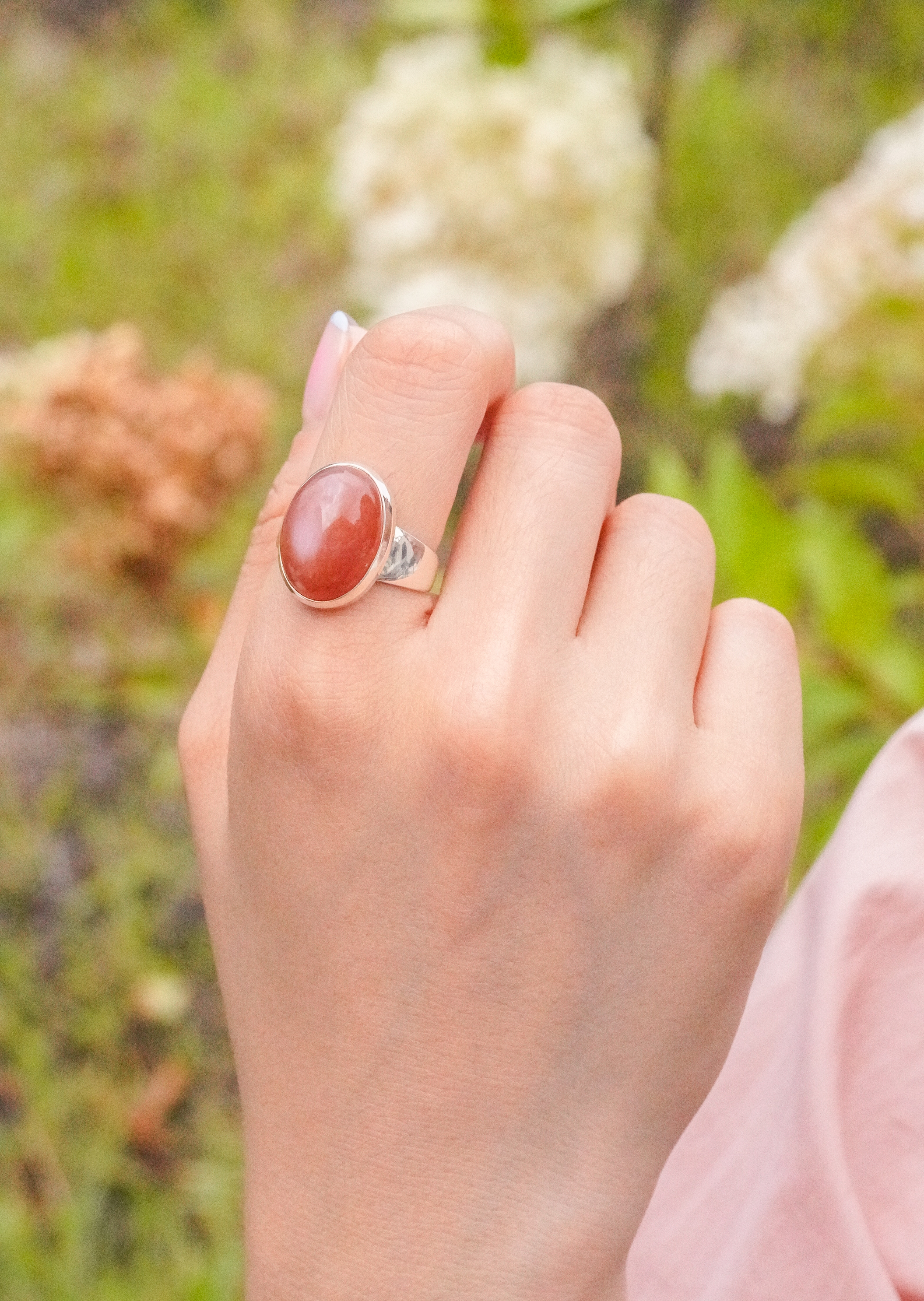 [678][마지막한점] 피치 문스톤 복숭아빛 천연석 타원형 925 실버 반지 1.5x2cm