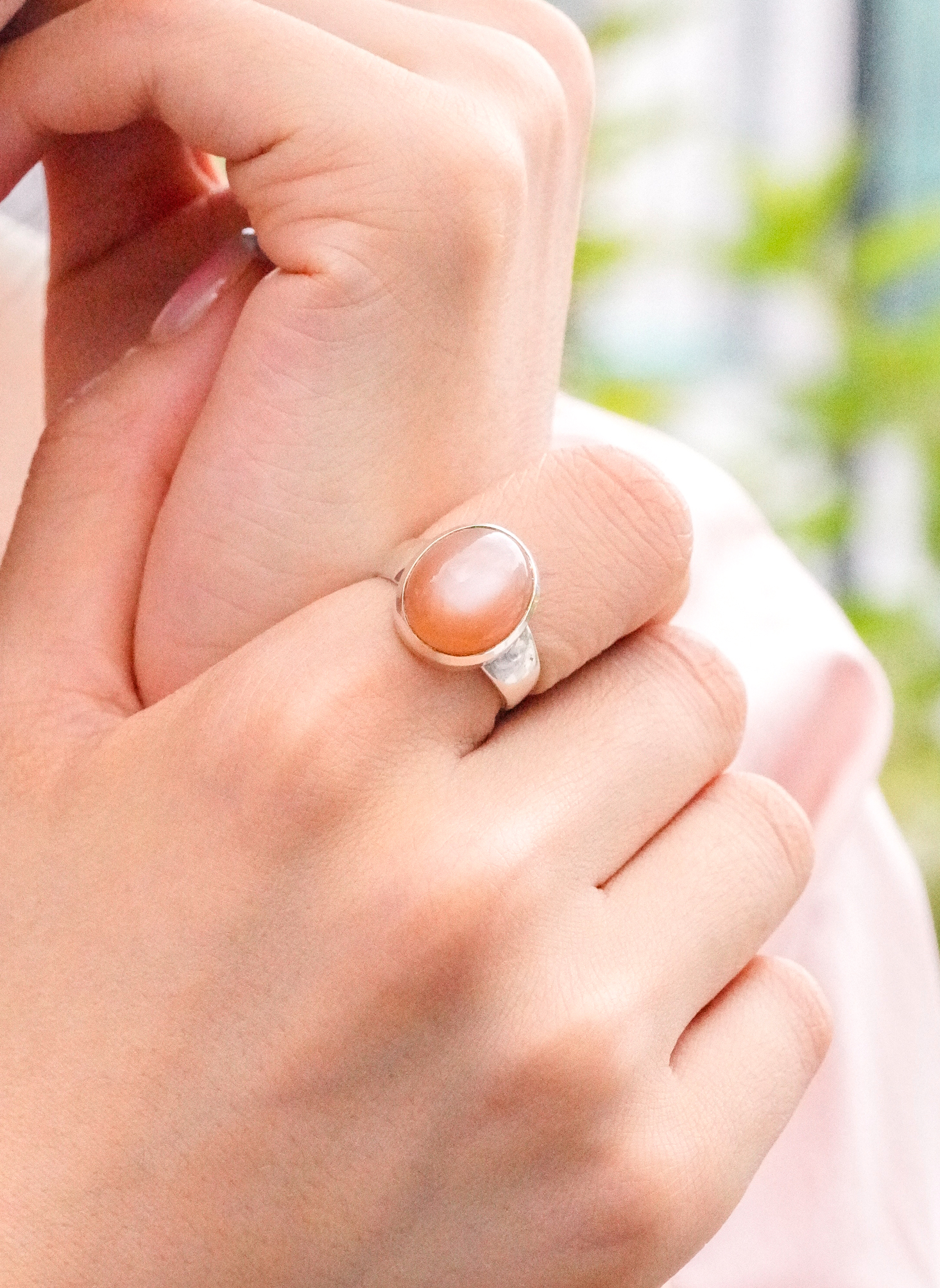 [677][마지막한점] 피치 문스톤 복숭아빛 천연석 타원형 925 실버 반지 1.4x1.6 cm