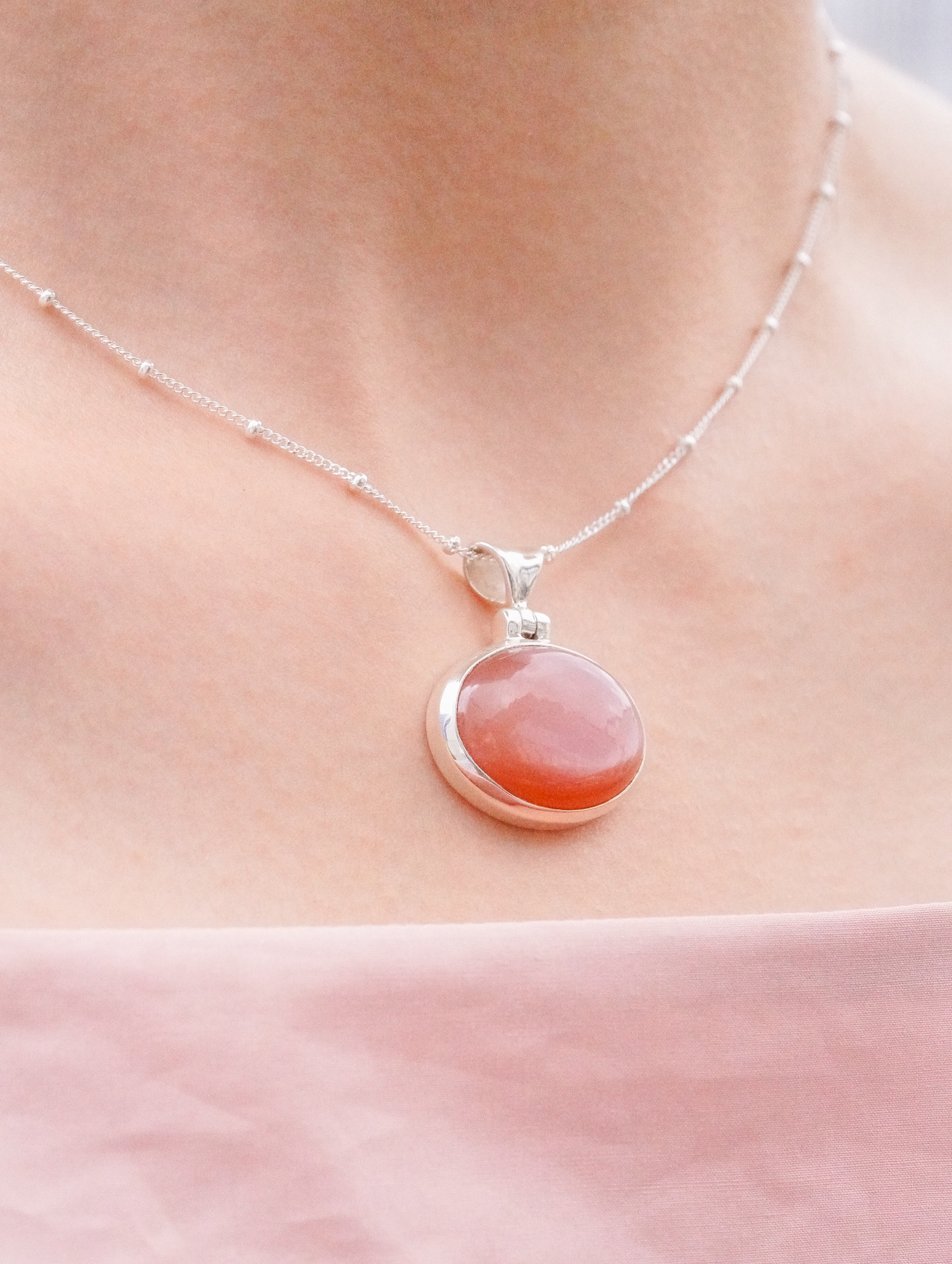 [670][마지막한점] 피치 문스톤 복숭아빛 천연석 가로 타원형 925 실버 펜던트 2.2x1.7 cm