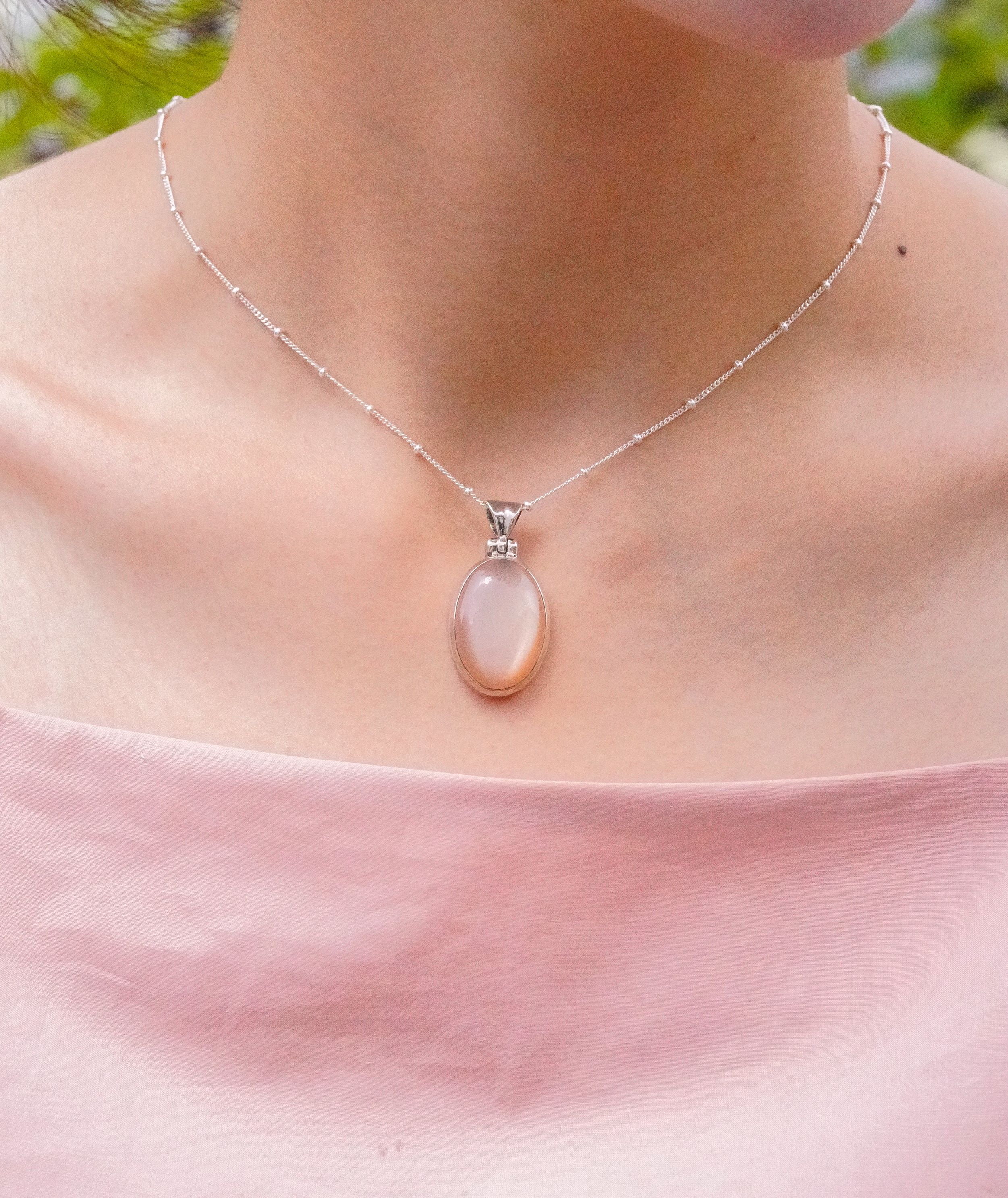[665][마지막한점] 피치 문스톤 복숭아빛 천연석 타원형 925 실버 펜던트 1.6x2.3 cm