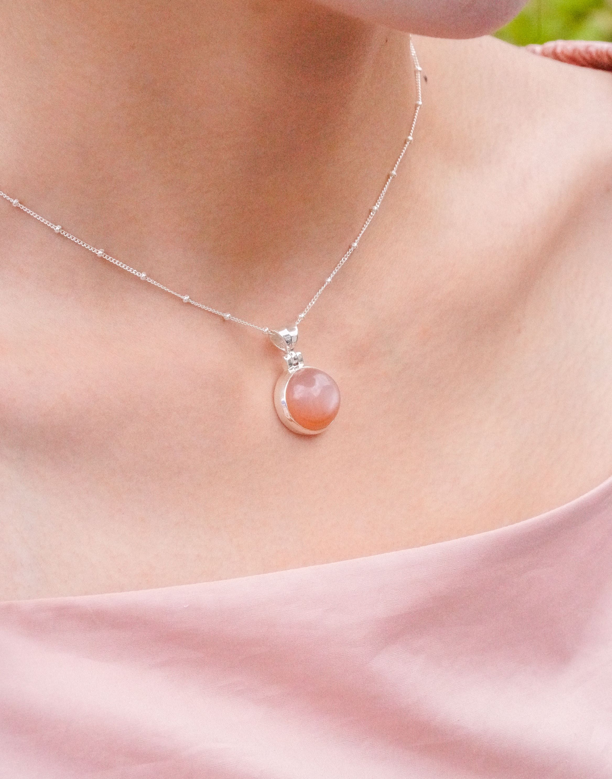 [672][마지막한점] 피치 문스톤 복숭아빛 천연석 원형 925 실버 펜던트 1.6x1.6 cm