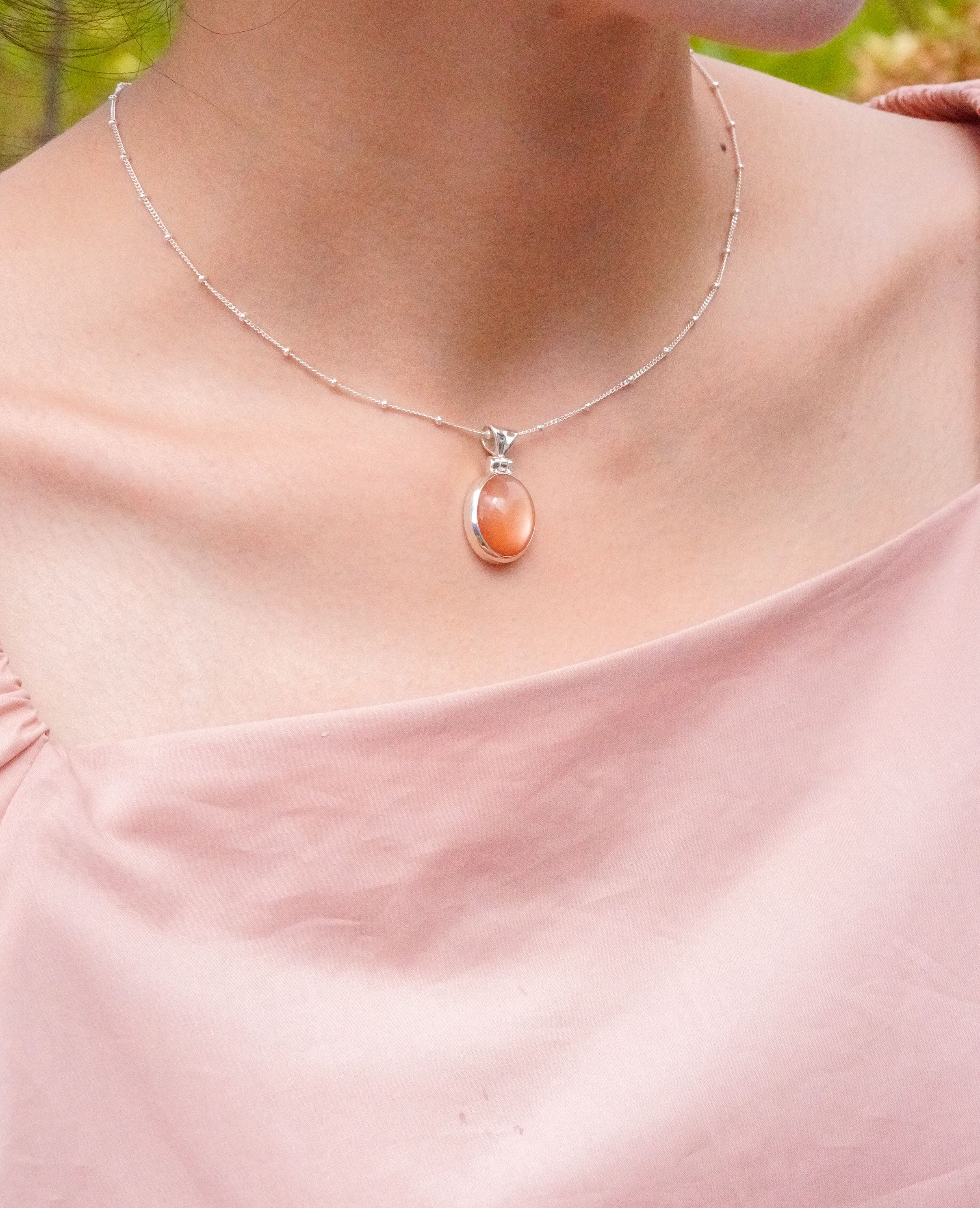 [667][마지막한점] 피치 문스톤 복숭아빛 천연석 타원형 925 실버 펜던트 1.4x1.8 cm