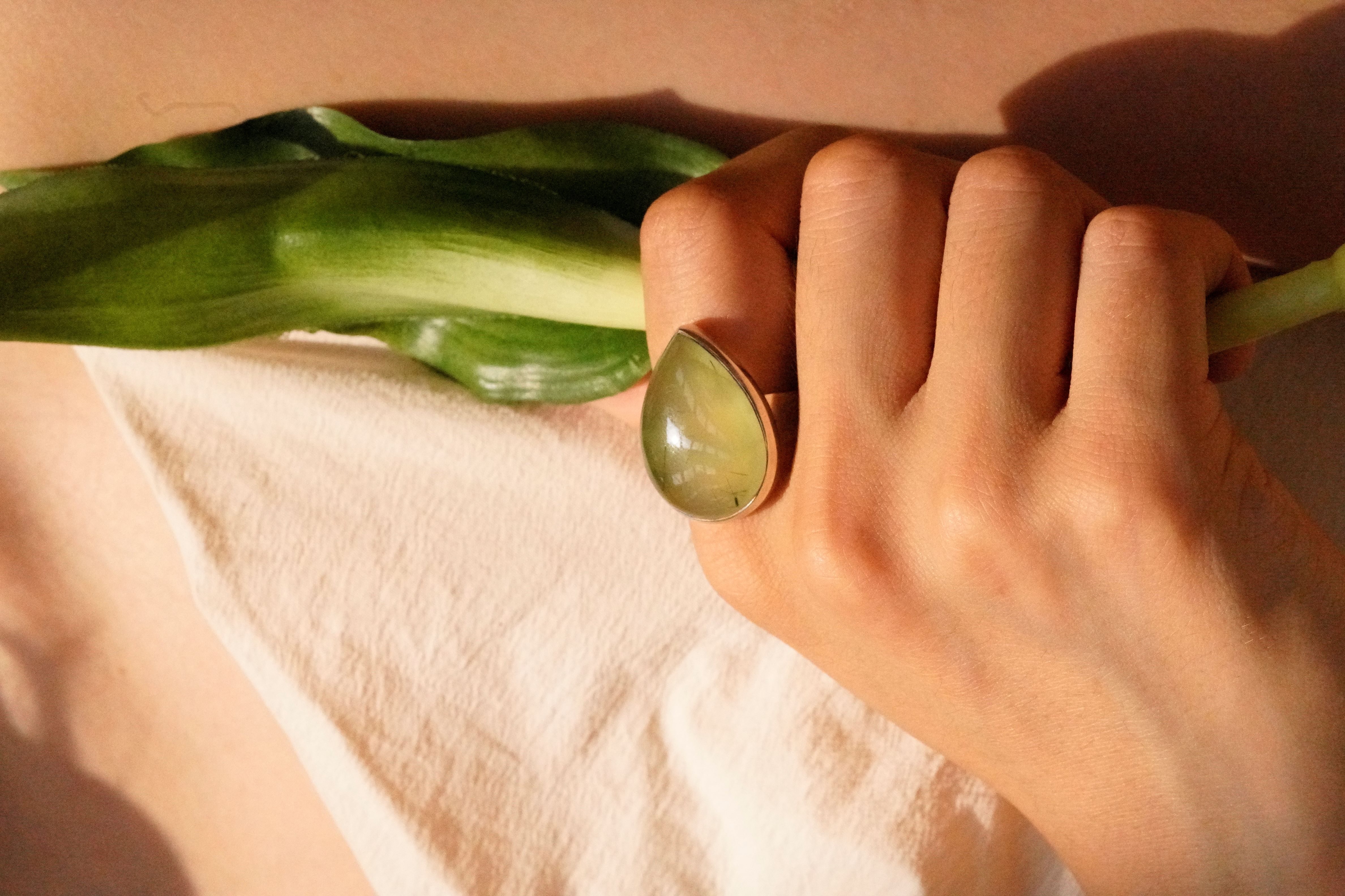[539][마지막한점] 상큼한 청포도를 닮은 원석 프레나이트 물방울 천연석 925 실버 반지 1.98 x 2.5cm