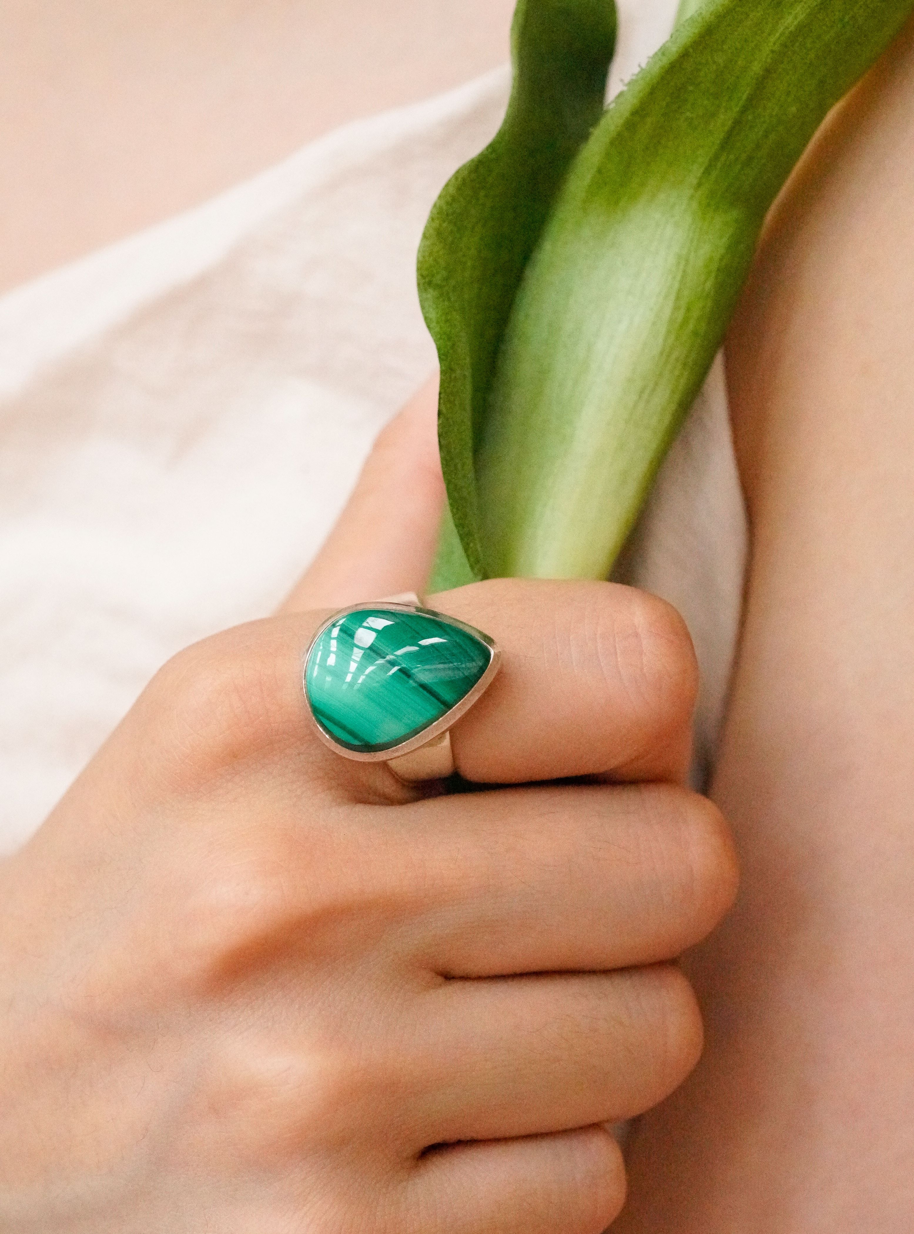 [551][마지막한점] 말라카이트 물방울 천연석 925 실버 반지 1.7 x 2.2 cm