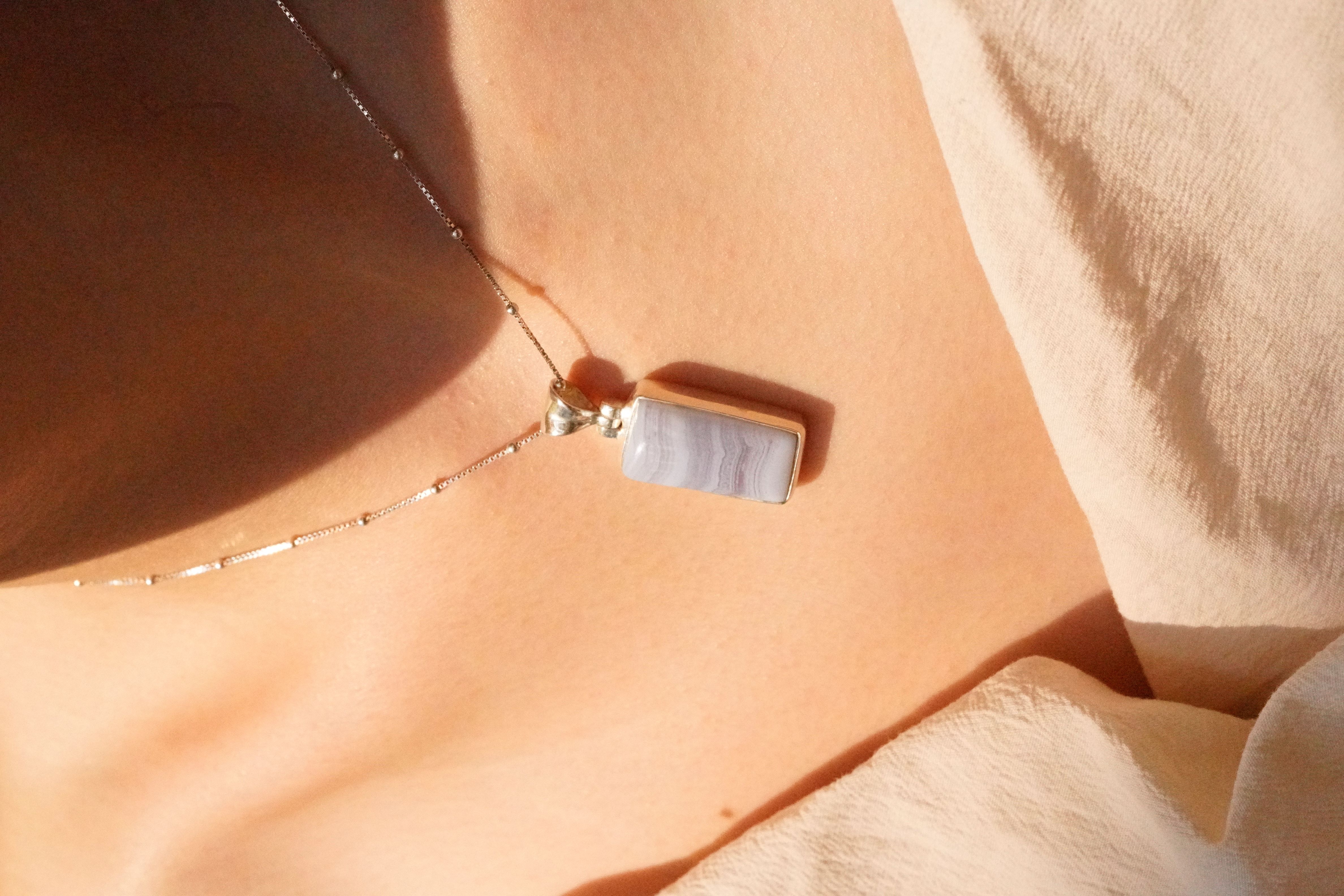 [517][원석포인트][마지막 한점]천연 블루레이스 아게이트 원석 925 실버 사각 스퀘어 펜던트 1.28 x 2.23cm