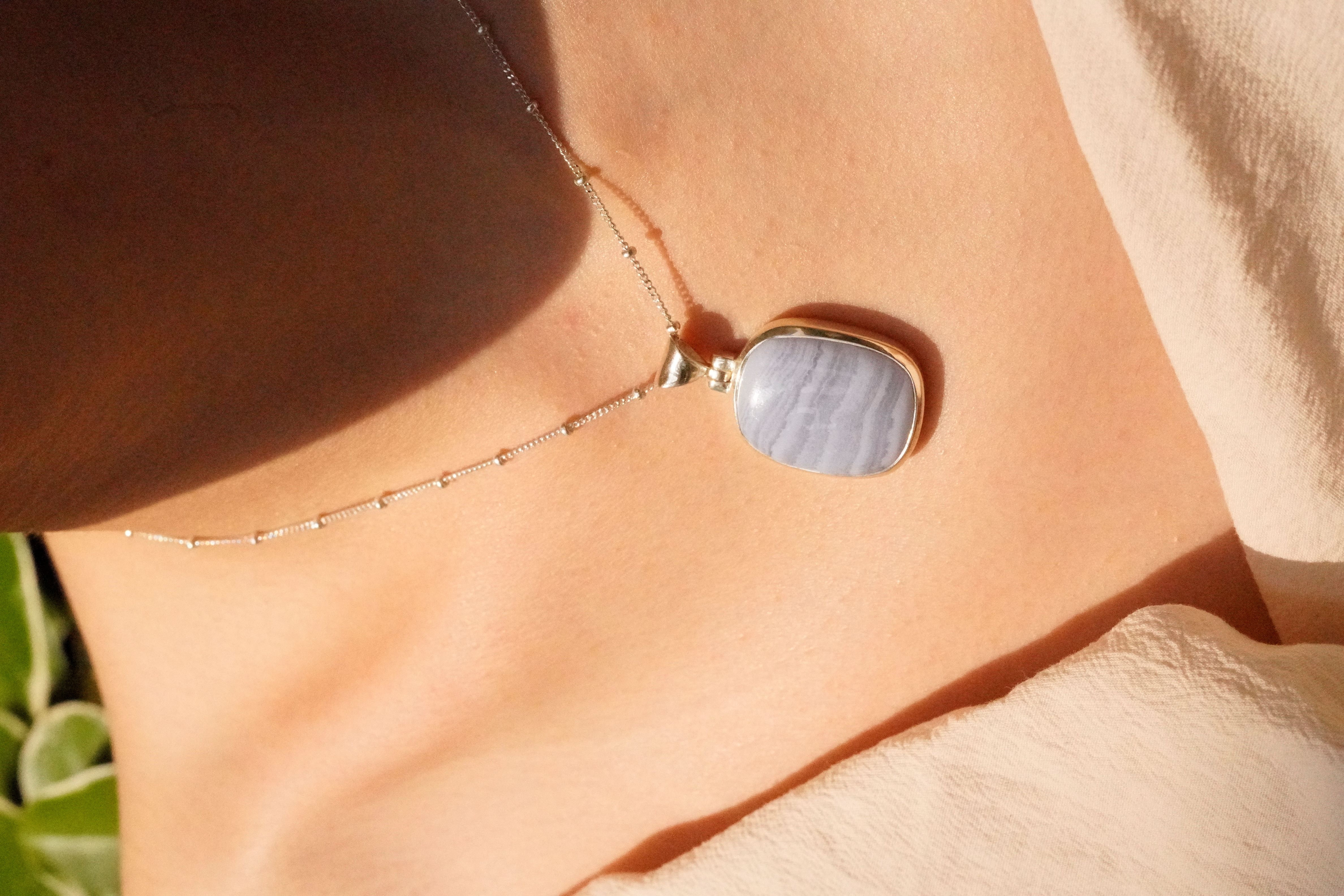 [512][원석포인트][마지막 한점]천연 블루레이스 아게이트 원석 925 실버 사각 스퀘어 펜던트 1.96 x 2.35cm