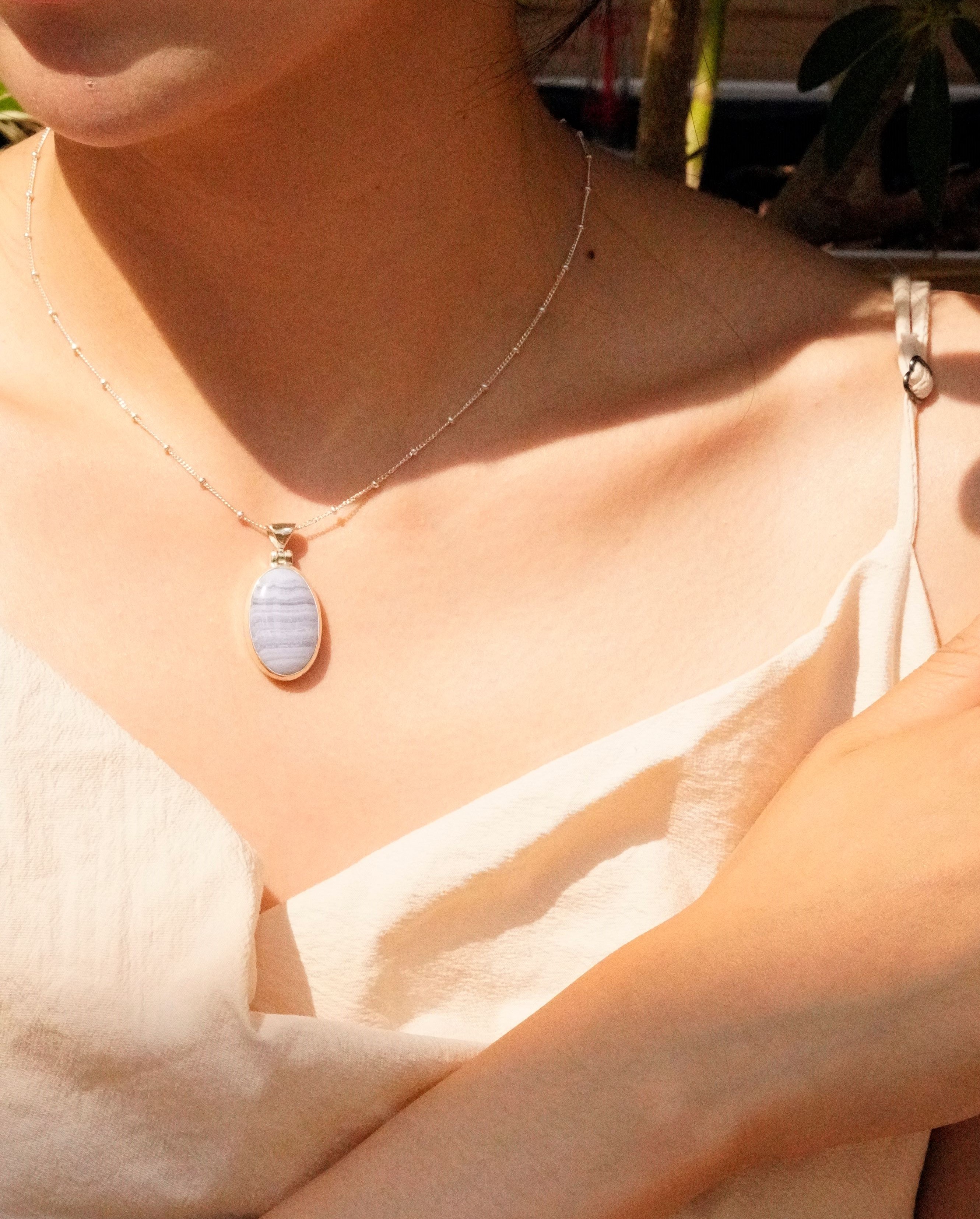 [508][원석포인트][마지막 한점]천연 블루레이스 아게이트 원석 925 실버 타원형 펜던트 1.59 x 2.4cm