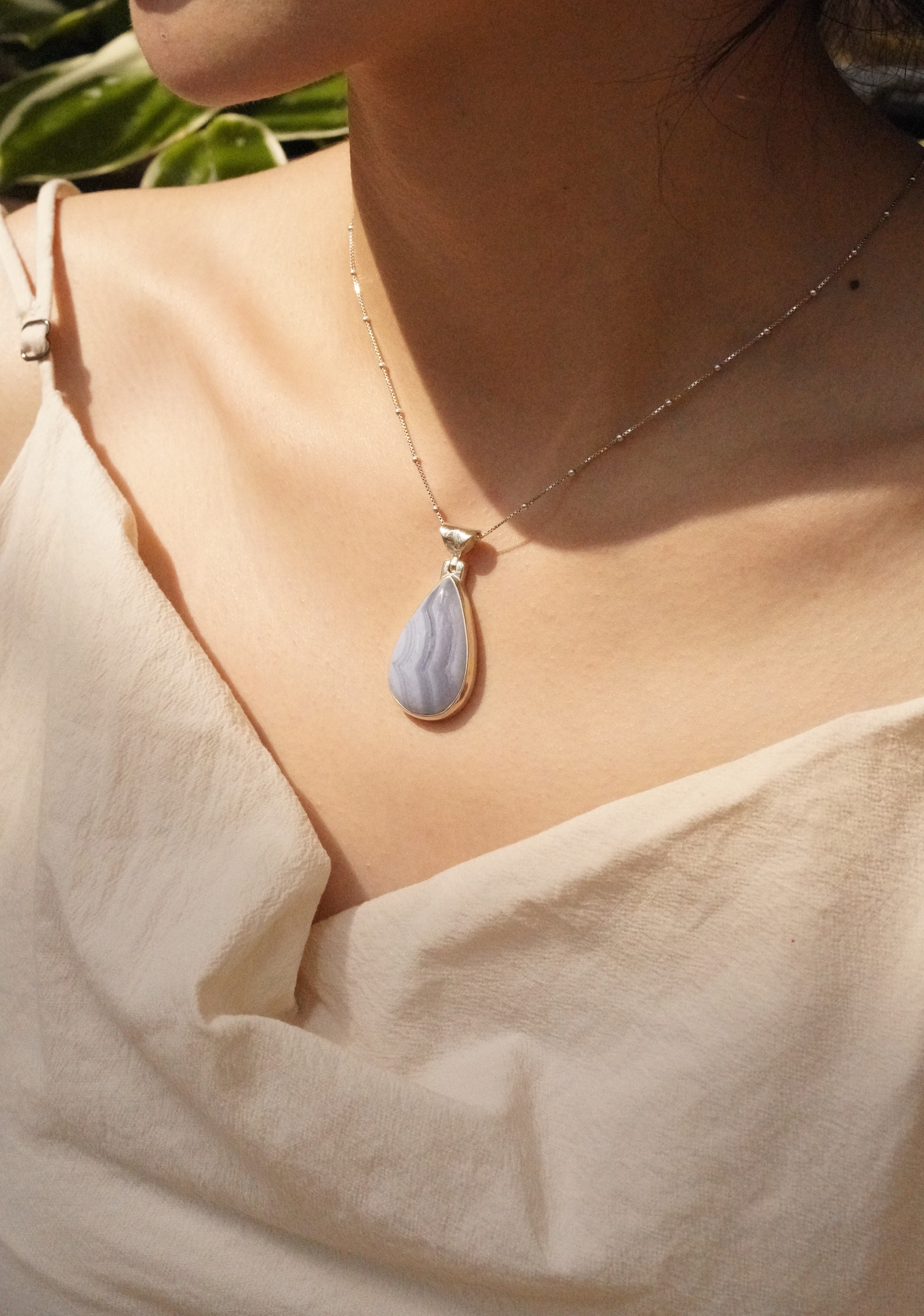 [506][원석포인트][마지막 한점]천연 블루레이스 아게이트 원석 925 실버 물방울 펜던트 1.9 x 2.8cm