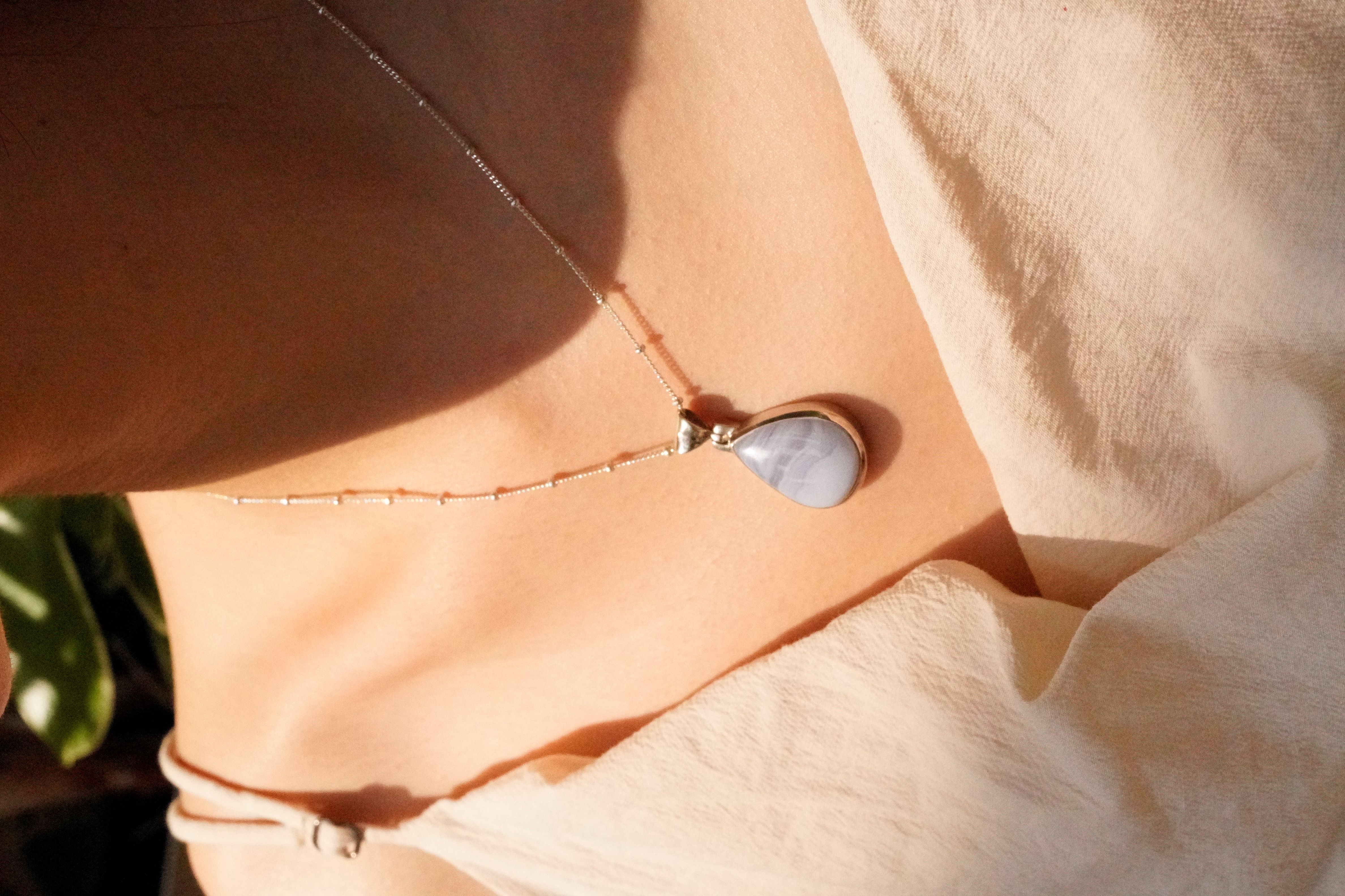 [504][원석포인트][마지막 한점]천연 블루레이스 아게이트 원석 925 실버 물방울 펜던트 1.86 x 2.28cm