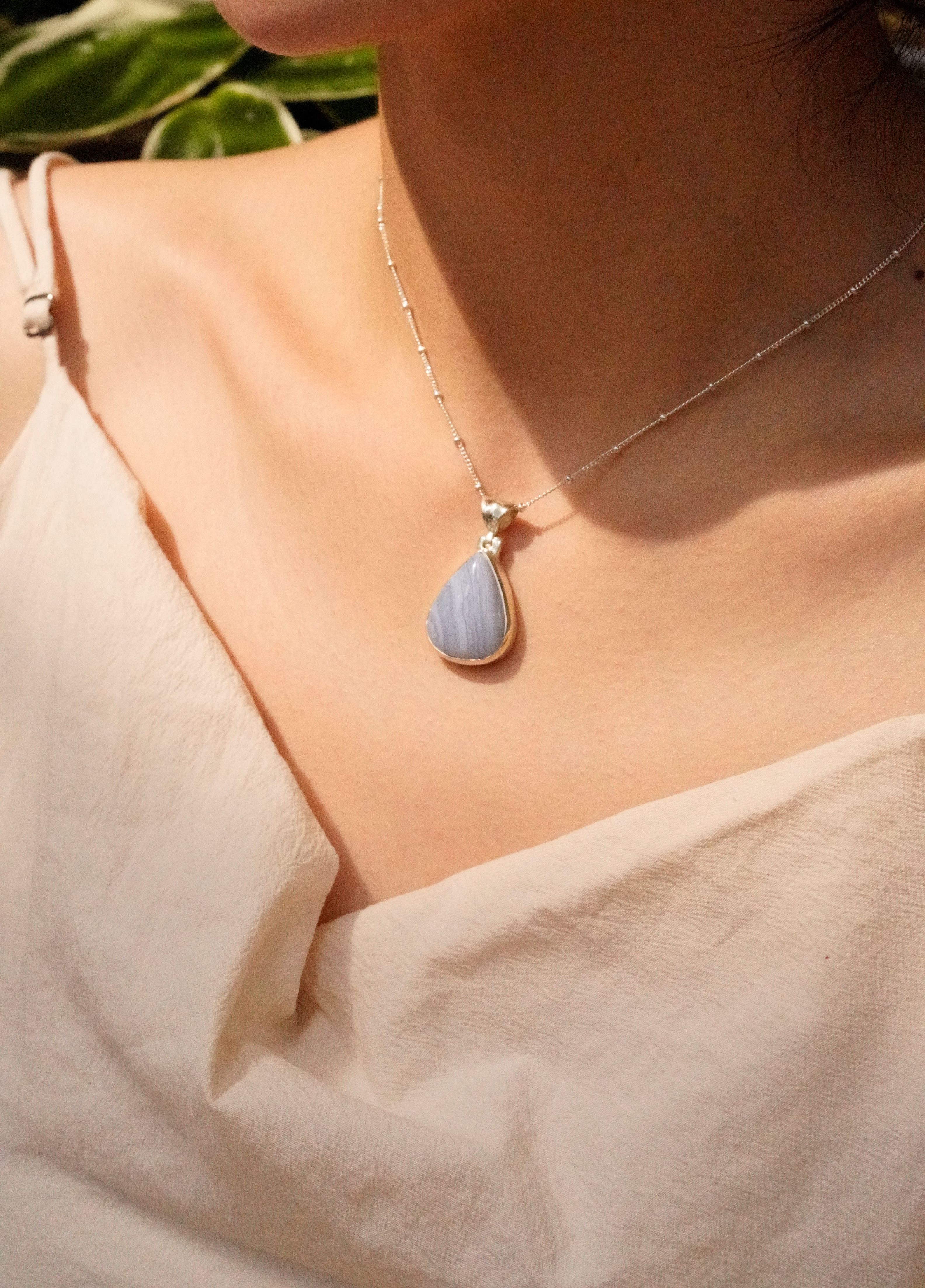 [502][원석포인트][마지막 한점]천연 블루레이스 아게이트 원석 925 실버 물방울 펜던트_ 1.82 x 2.22cm