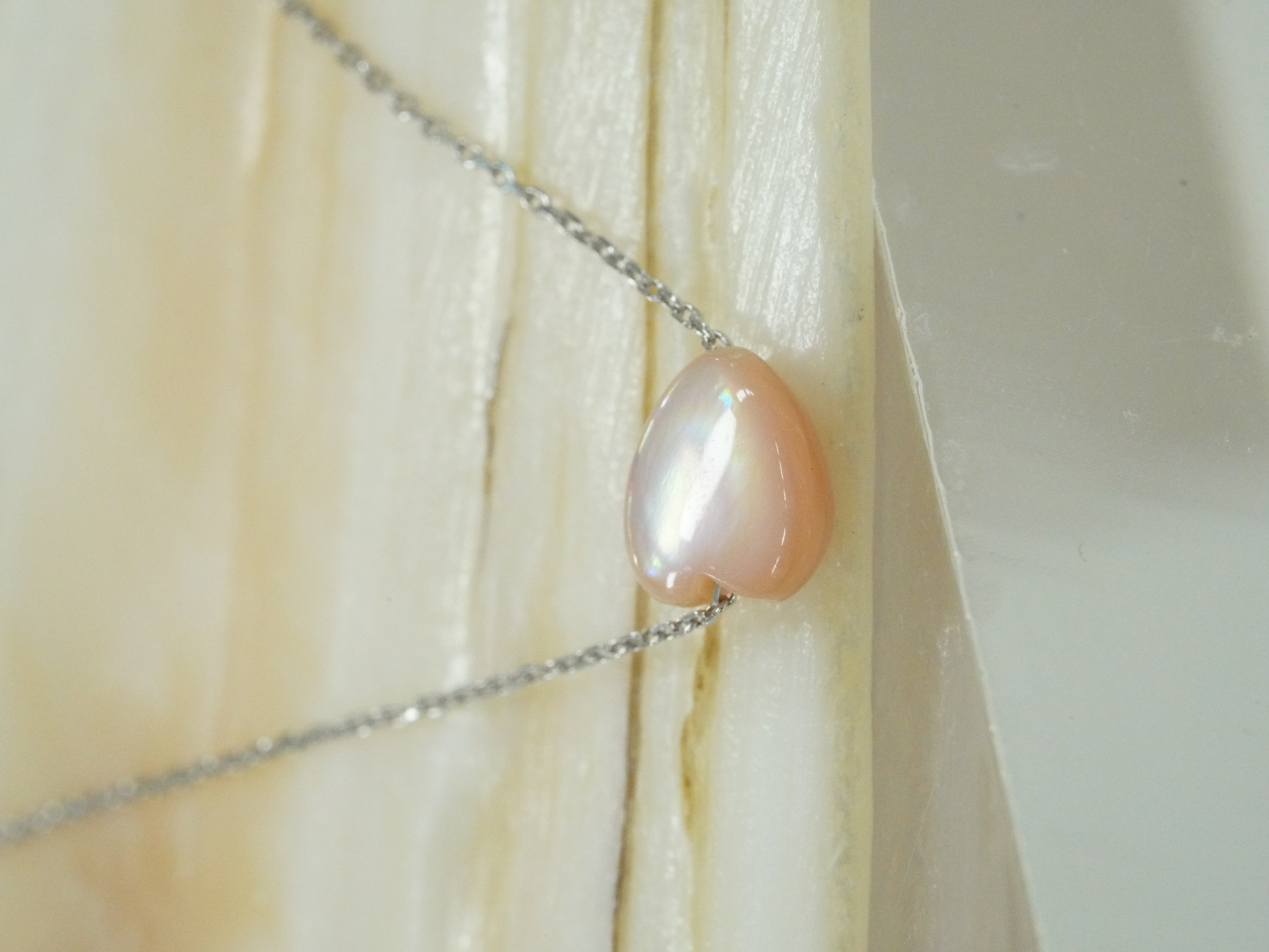 [158][원석포인트] 하트 핑크 자개 화이트 도금 925 실버 목걸이
