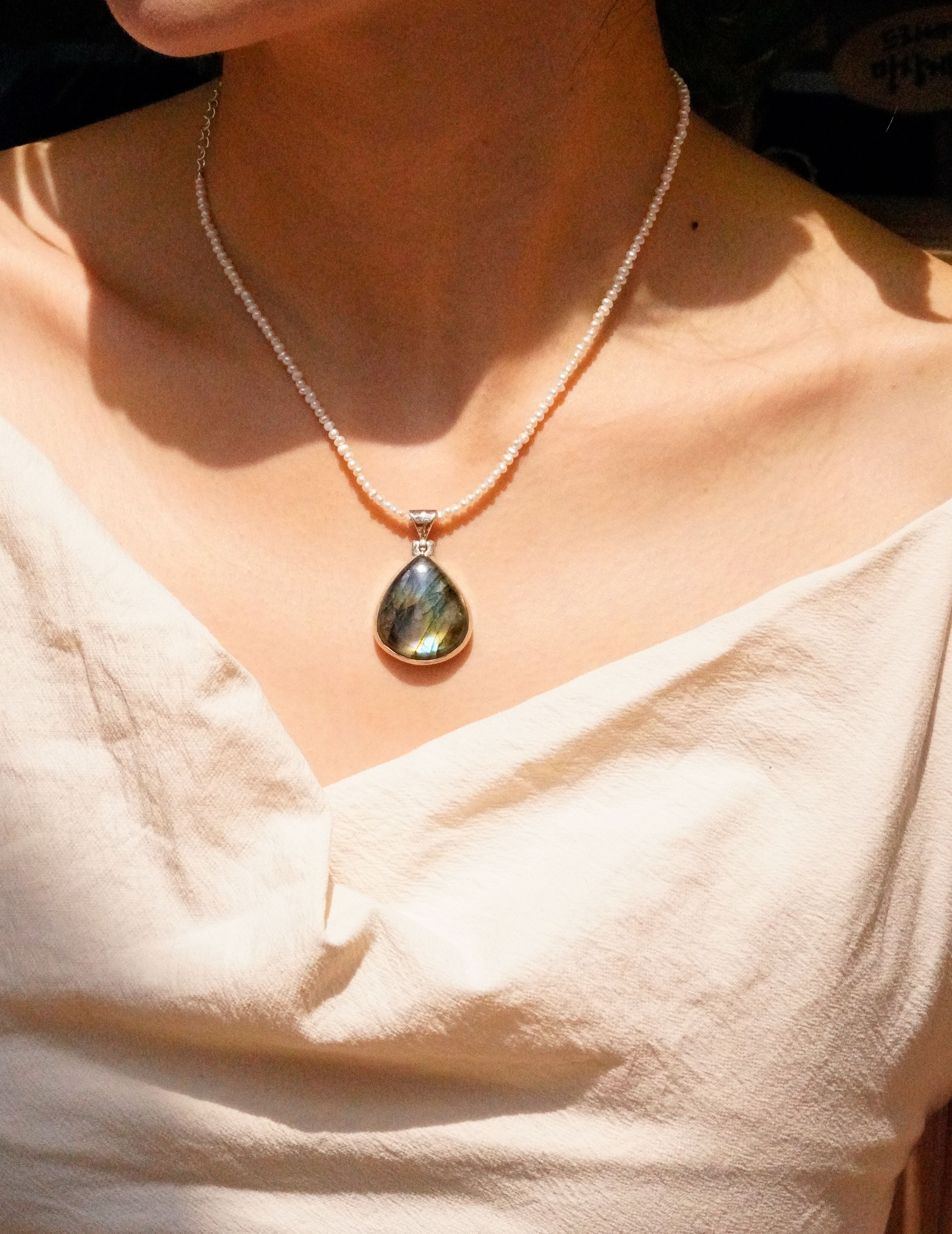 [150][원석포인트][마지막 한점] 래브라도라이트 원석 물방울 925 실버 펜던트