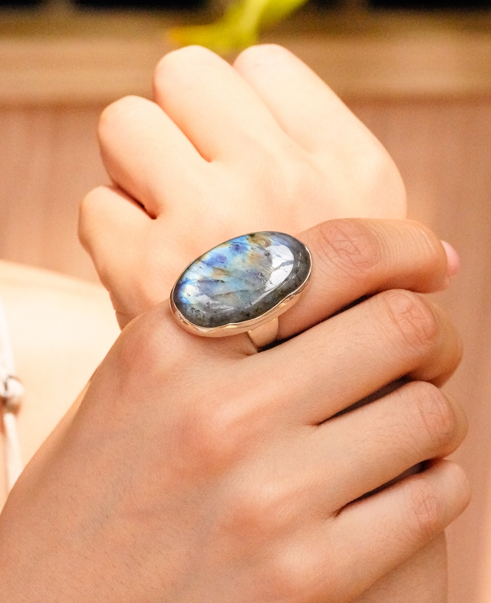 [138][원석포인트][마지막 한점] 래브라도라이트 원석 타원형 925 실버 반지