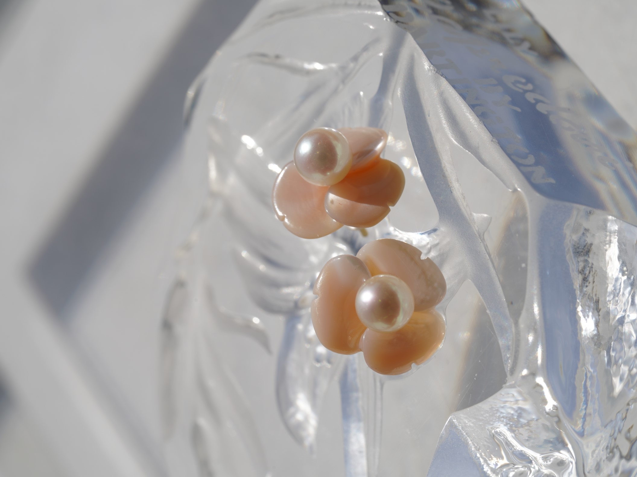 [111][원석포인트] 핑크 플라워 자개 1쌍(2pcs)~12mm