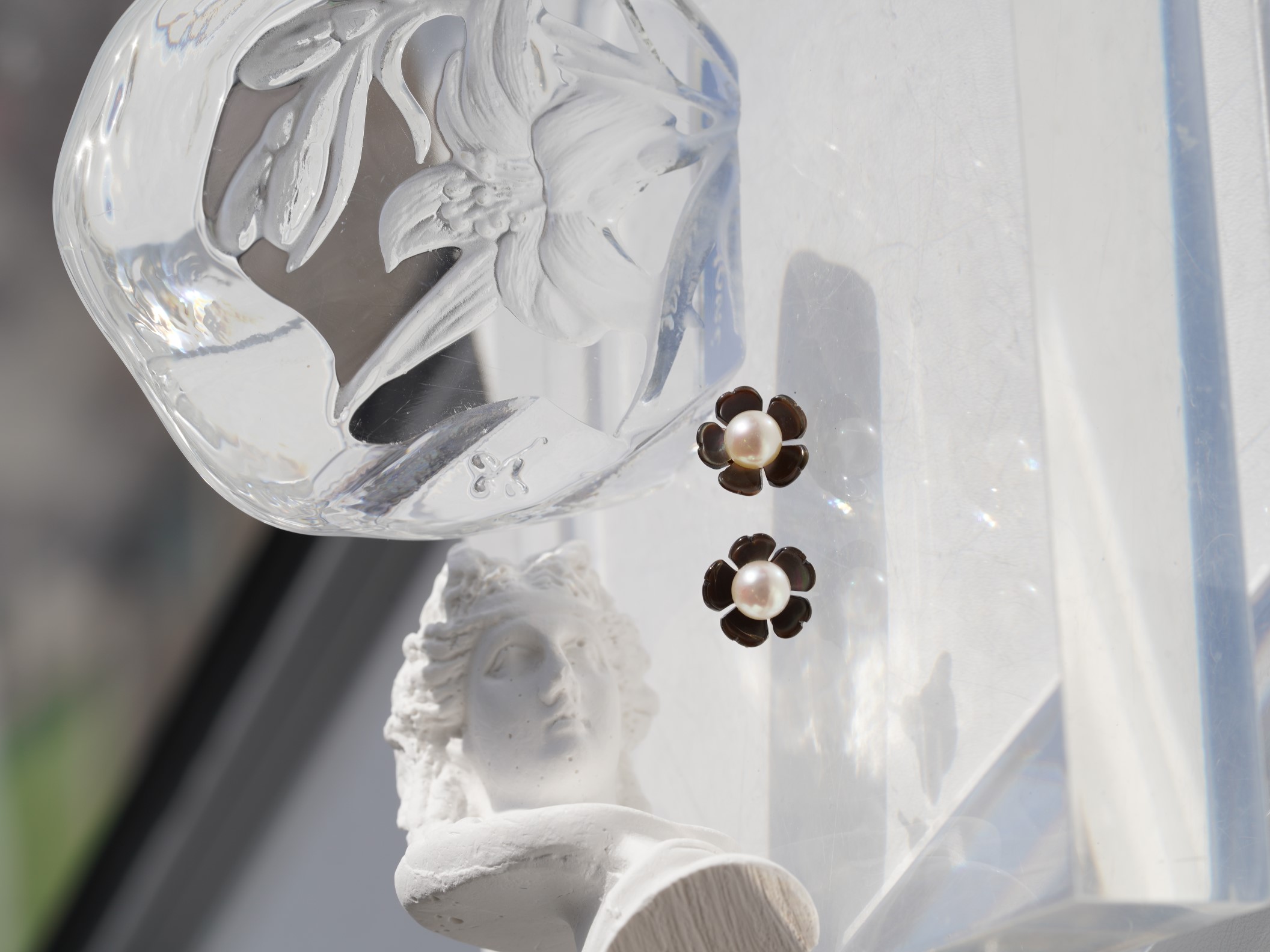[107][원석포인트] 블랙 플라워 자개 1쌍(2pcs)~10mm