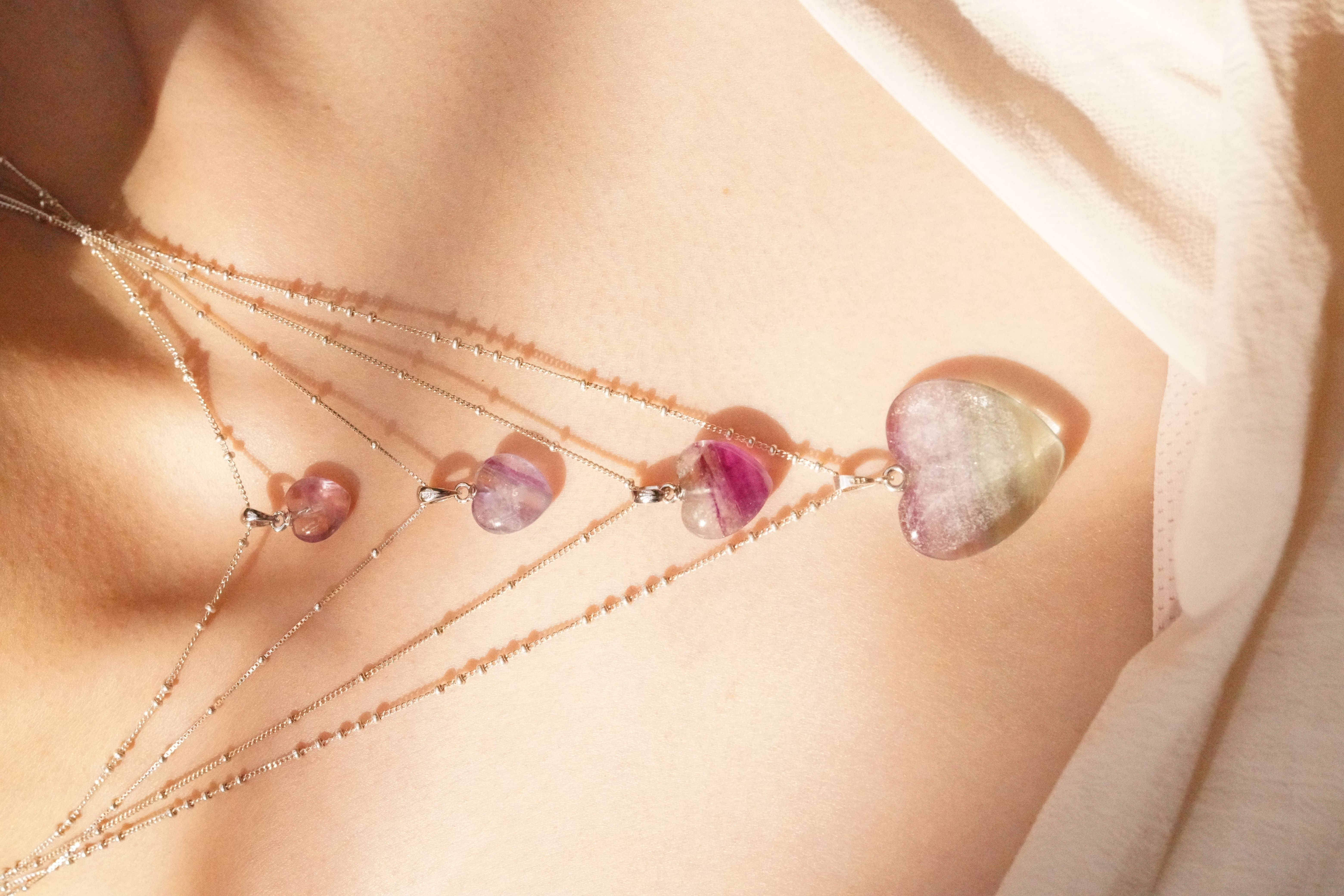 [99][원석포인트] 플루라이트 하트 통통 원석 925 실버 펜던트