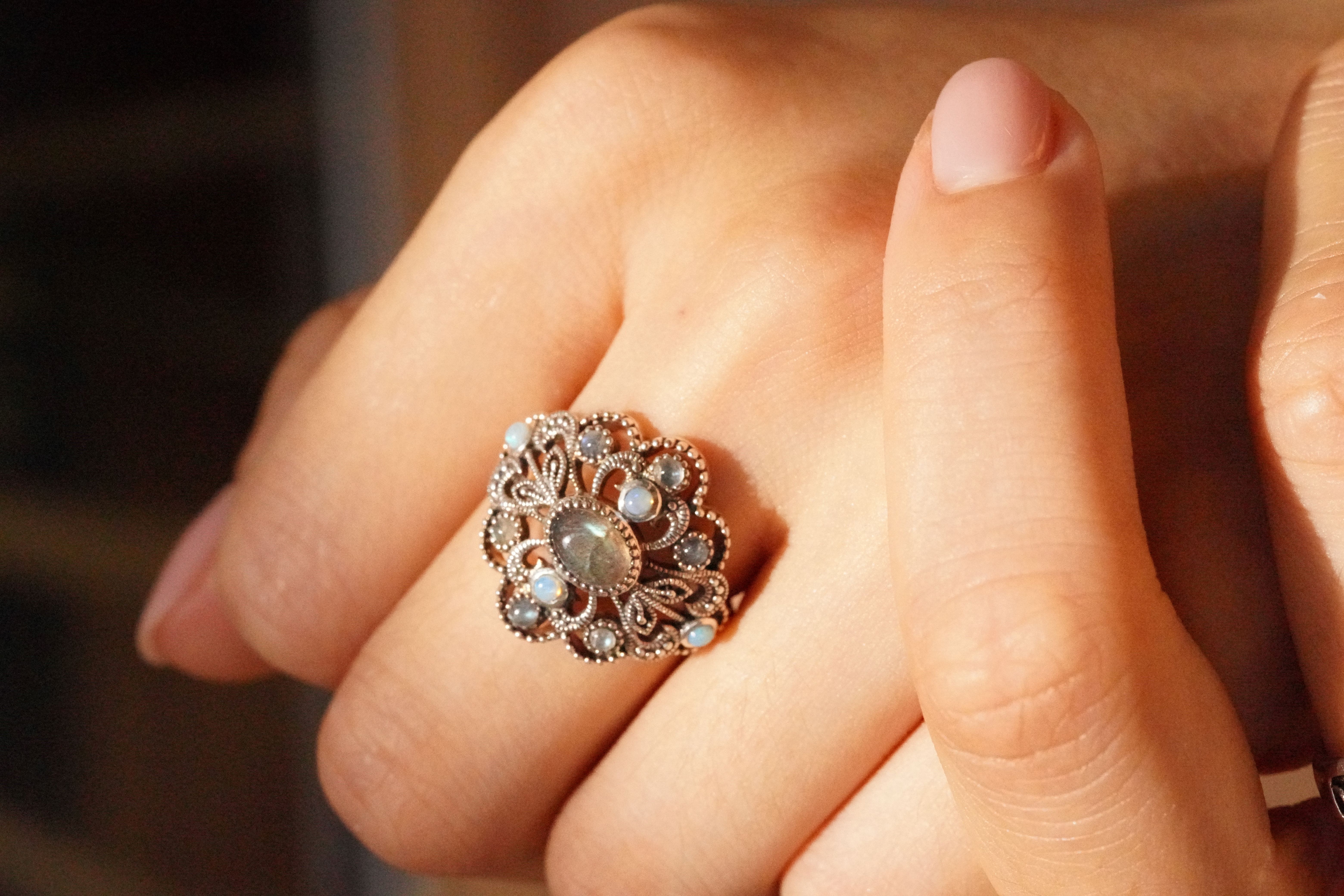 [166][Rokuzan] 로쿠잔 래브라도라이트 블로오팔 925 실버 반지