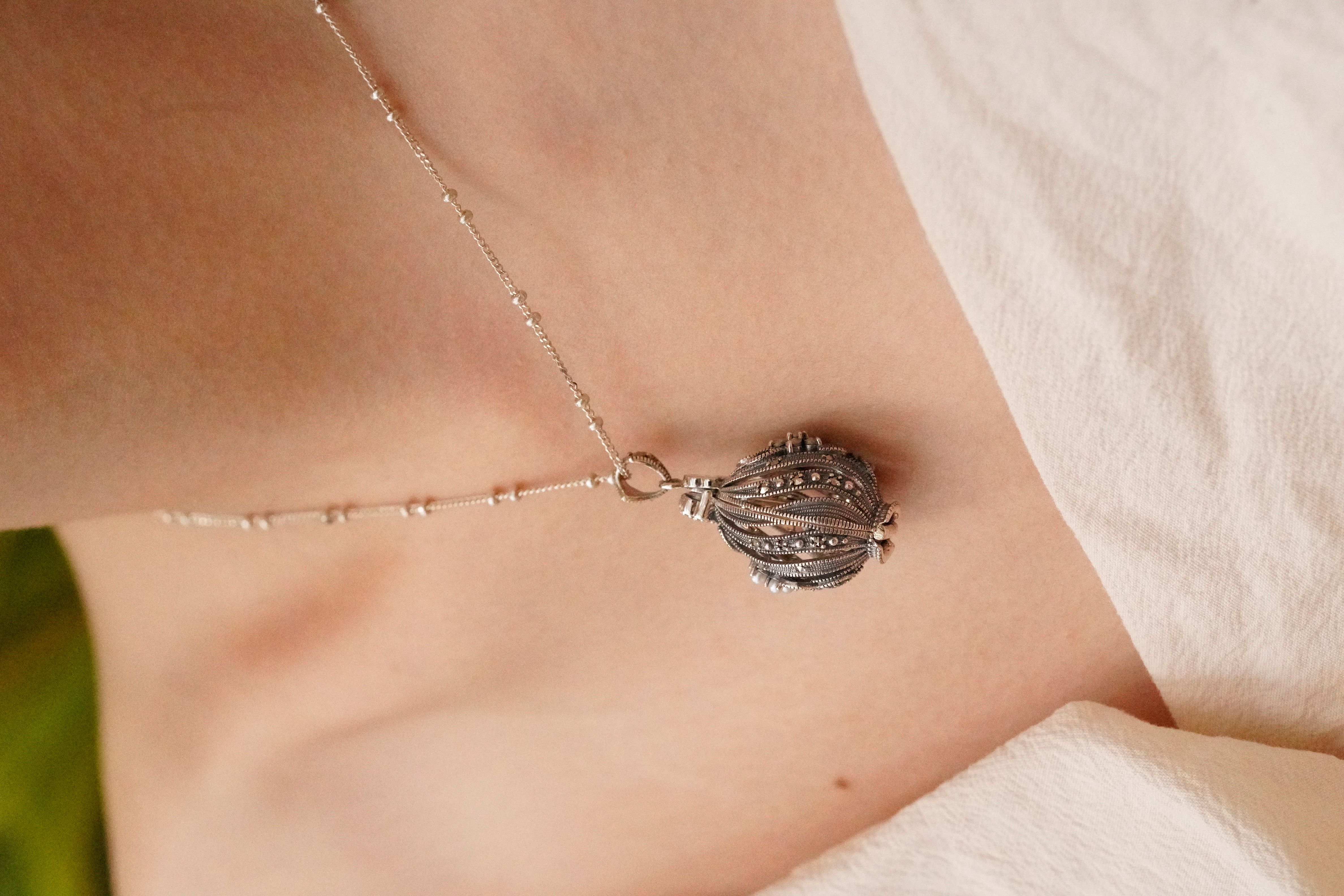 [432][마지막한점][Rokuzan] 로쿠잔 로마노프 왕조의 임페리얼 부활절 달갈 펜던트처럼 유럽전역 영원한 행복의 상징인 925 실버 씨드펄 마카사이트 에그 로켓 펜던트