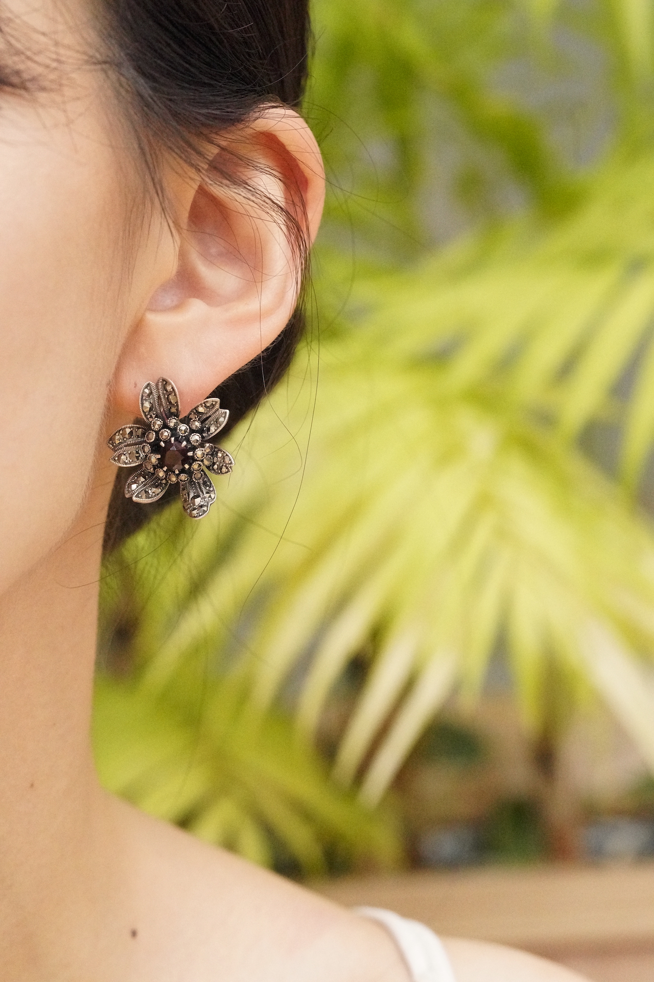 [387][Rokuzan] 로쿠잔 가넷을 품고 있는 입체적인 표현이 매력적인 존재감있는 925 실버 마카사이트 귀걸이_스크류 타입_약 26×23mm