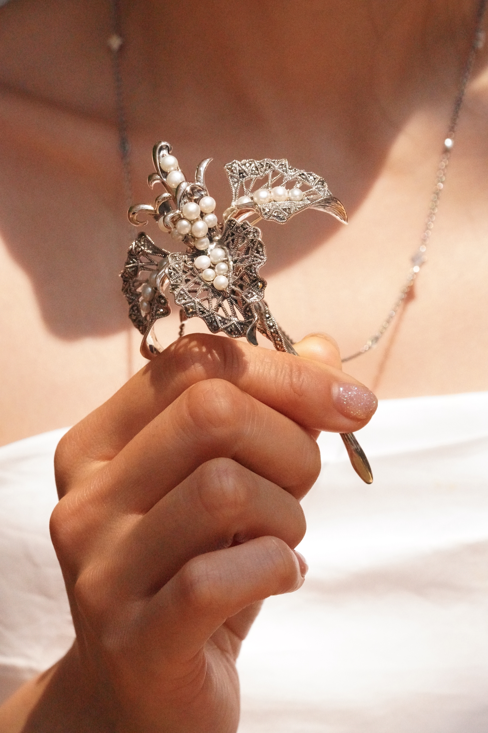 [380][마지막 한점][Rokuzan] 로쿠잔 행복은 분명 당신의 것이라는 꽃말의 입체적인 제비붓꽃 펜던트 브롯지 겸용