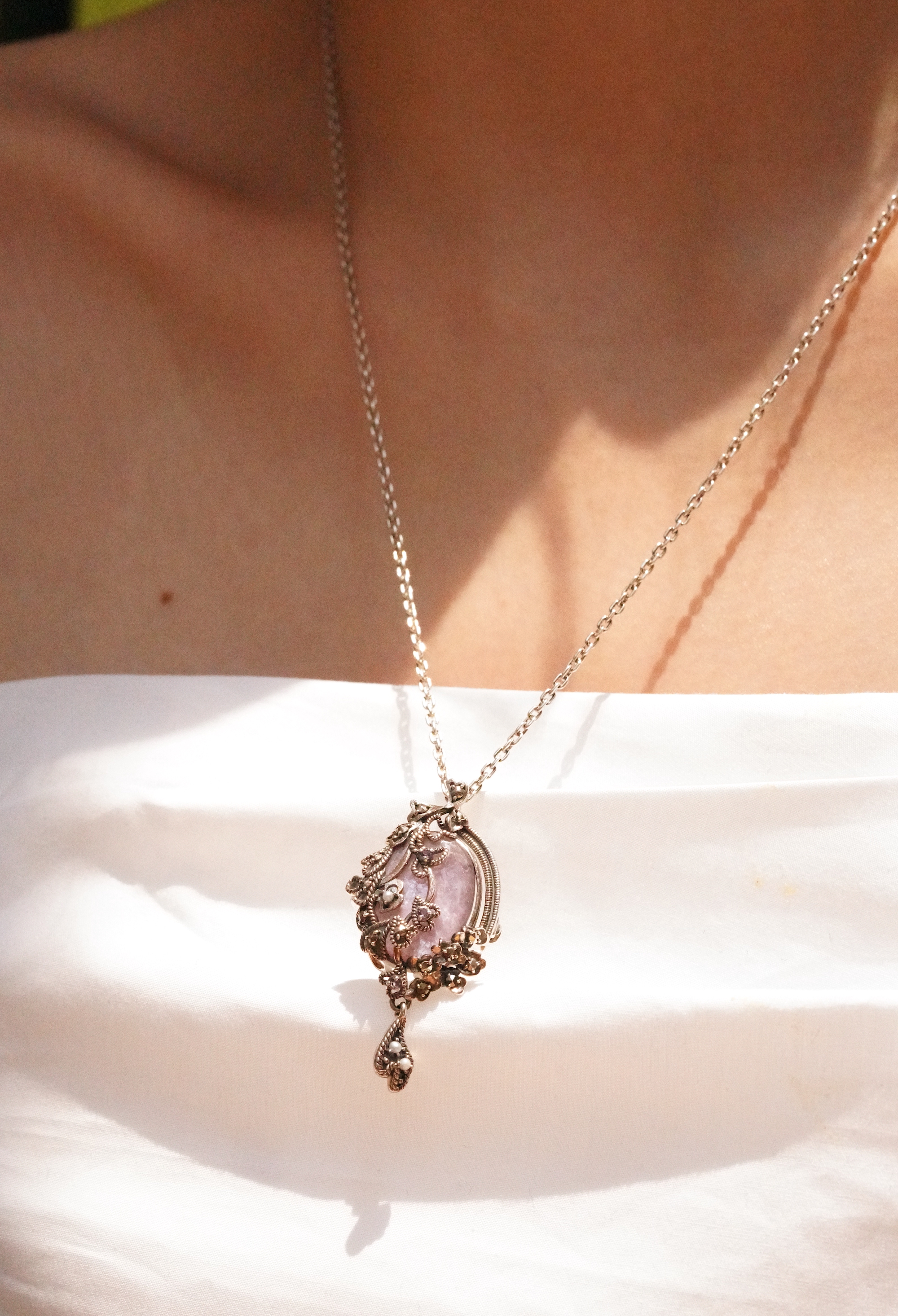 [357][Rokuzan] 로쿠잔 운모 자수정 마카사이트 925 실버 펜던트 겸 브롯지