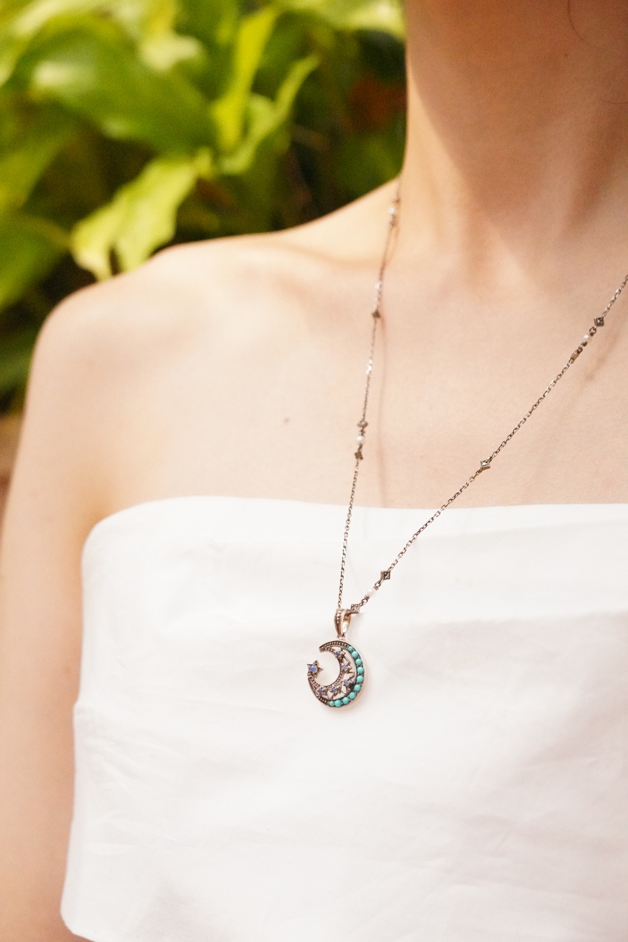 [345][Rokuzan] 로쿠잔 터키석 블루오팔 달 925 실버 펜던트