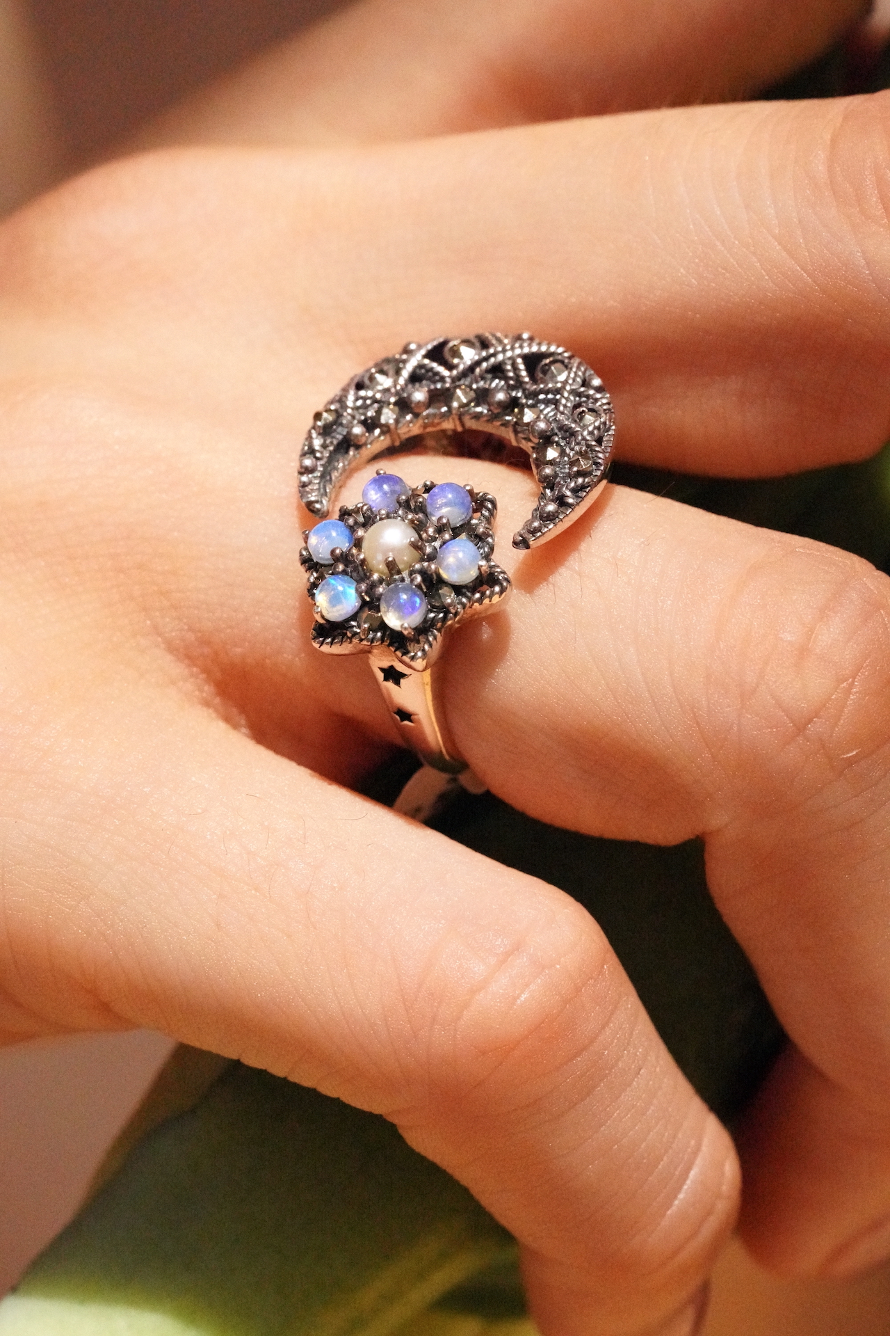 [329][Rokuzan] 로쿠잔 블루오팔 마카사이트 화이트 토파즈 오픈링 925 실버 반지