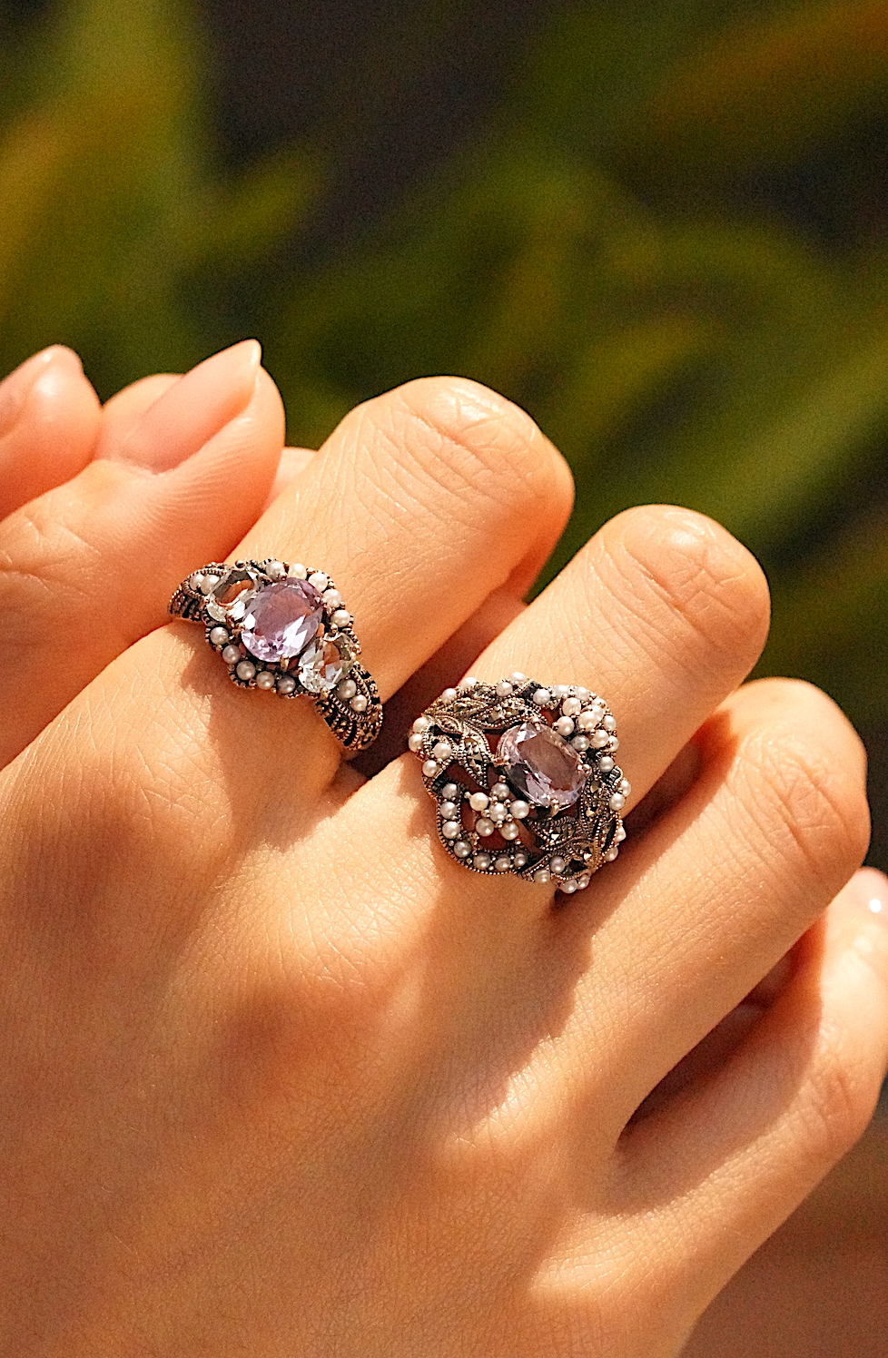 [326][Rokuzan] 로쿠잔 그린 자수정 퍼플 자수정 925 실버 반지