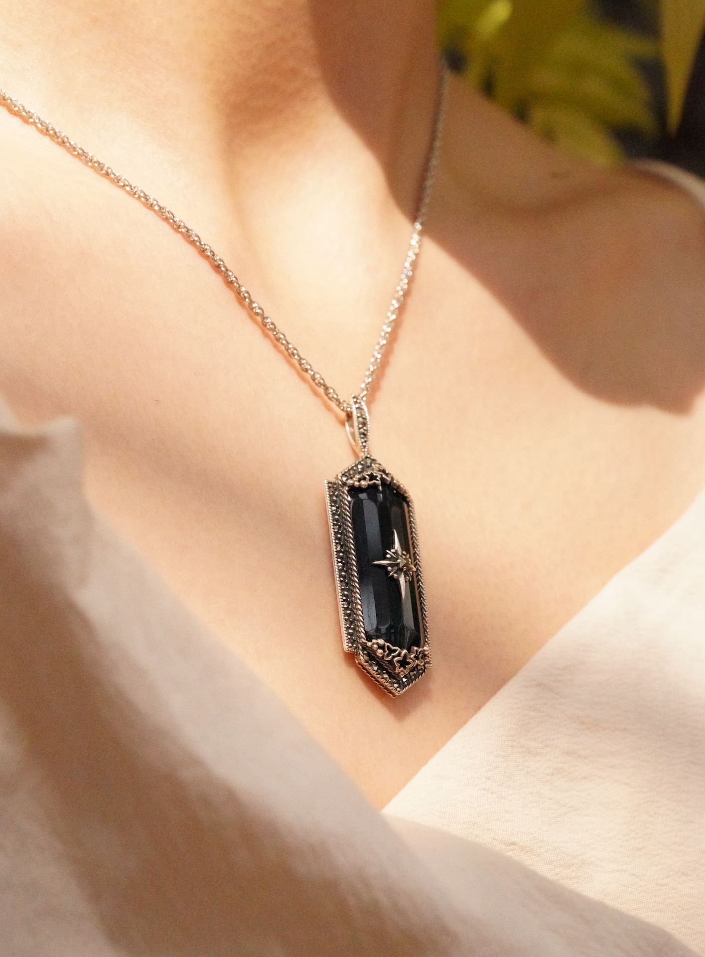 [312][Rokuzan] 로쿠잔 오닉스 마카사이트 925 실버 1.7x5cm(펜던트고리 포함) 목걸이 50cm 체인 포함
