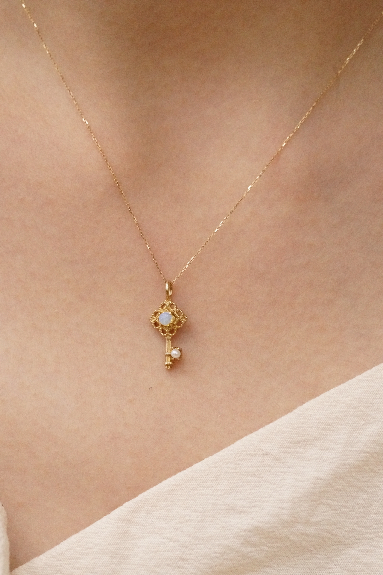 [249][Rokuzan] 로쿠잔 10K 골드 블루오팔 쁘띠 키 다이아몬드 목걸이