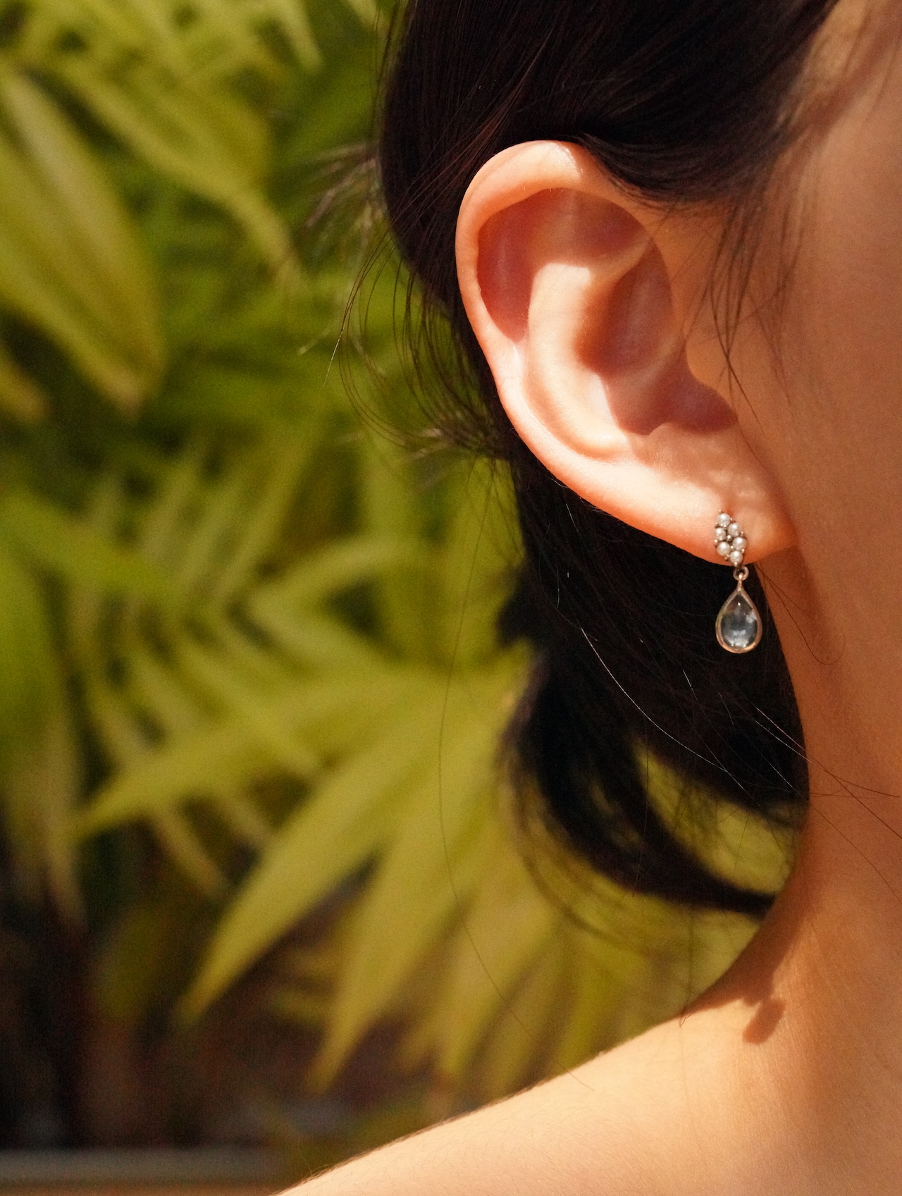 [190][Rokuzan] 로쿠잔 블루 토파즈 씨드펄 원석 925 실버 귀걸이