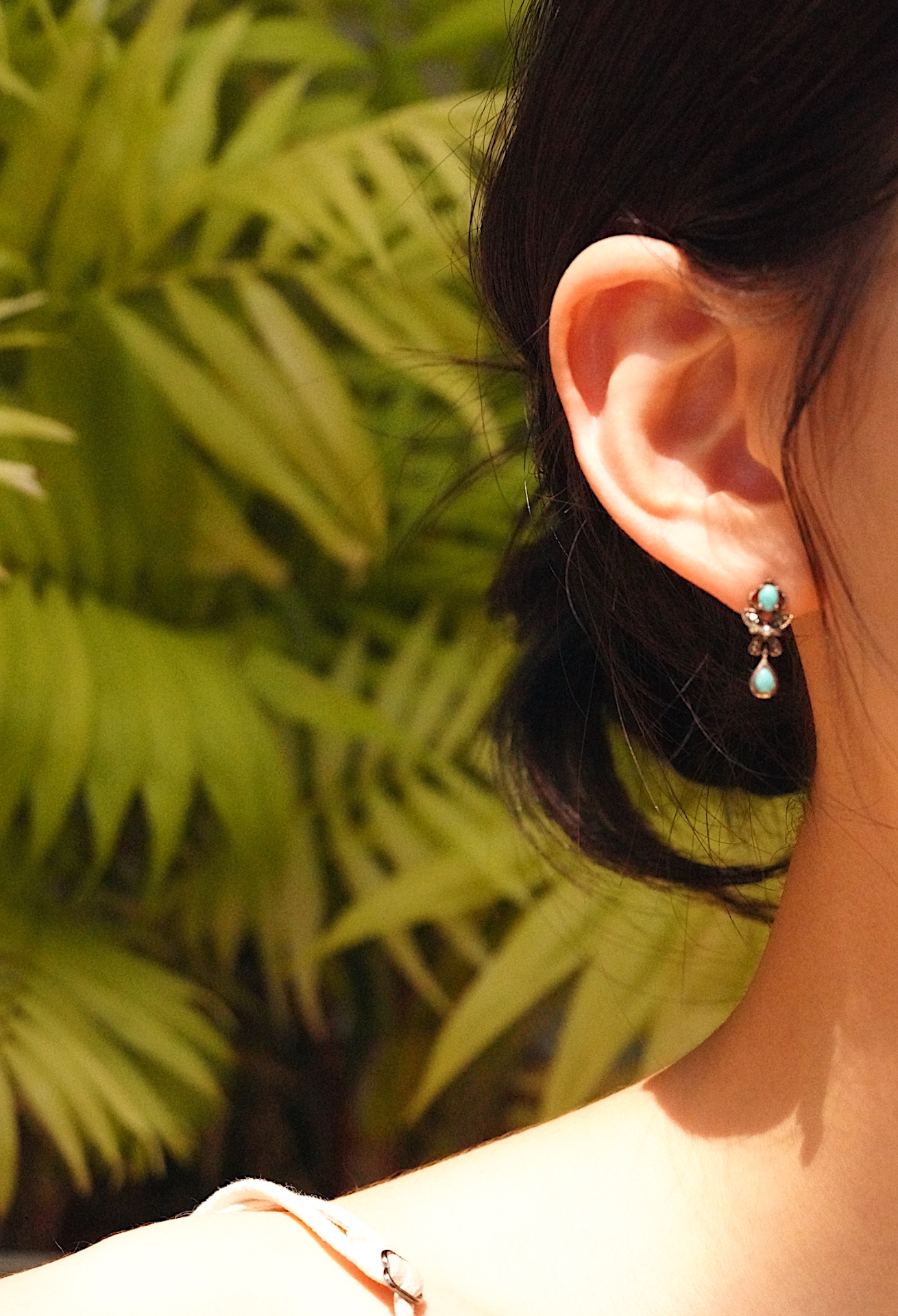 싱글 캐보션 컷과 페어컷의 터키석이 상 하의 대칭 구조를 가지고 있어 안정감을 주고