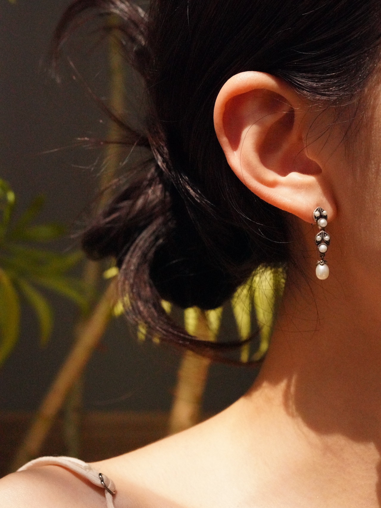 이어링을 착용하여 턱선이 갸름해 보일 수 있습니다.