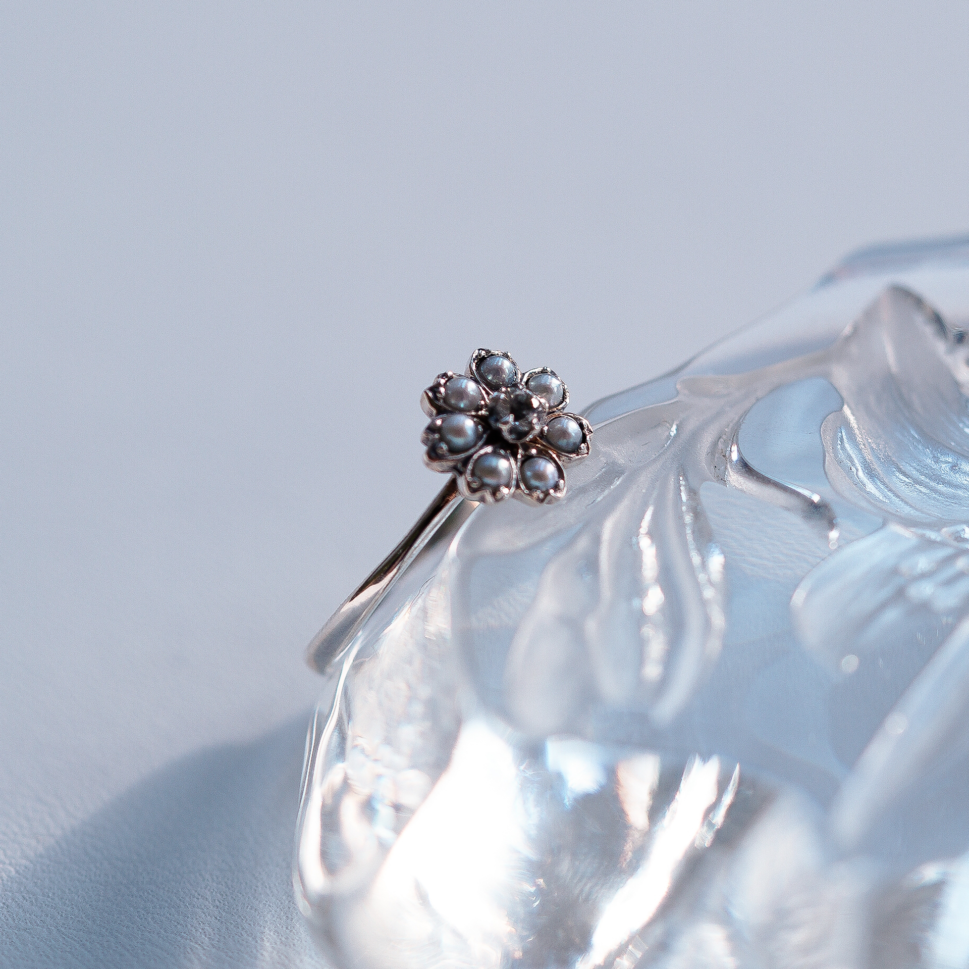 [217][Rokuzan] 로쿠잔 다이아몬드 씨드펄 실버 반지 1x1cm