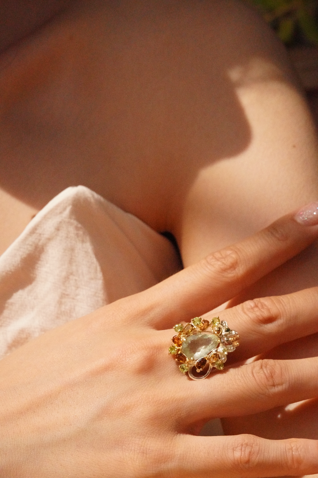 마퀴즈 쉐입의 아쿠아 마린이 페리도트와 시트린이 함께 어우러져