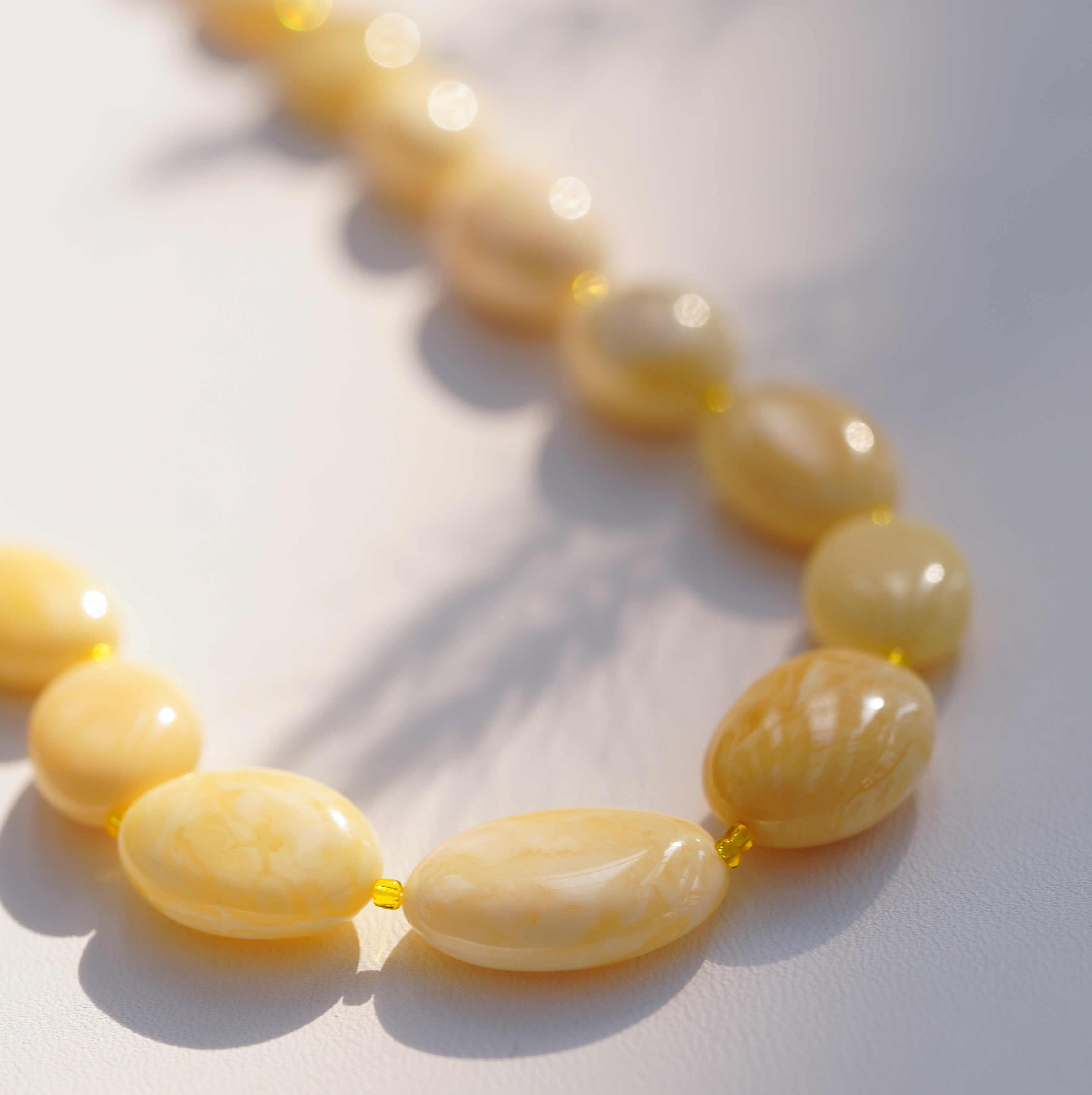[A110][마지막한점] 폴란드 고퀄 트레디셔널 컷팅 밀화 조약돌 그라데이션 호박 목걸이_ 48cm_6-21mm