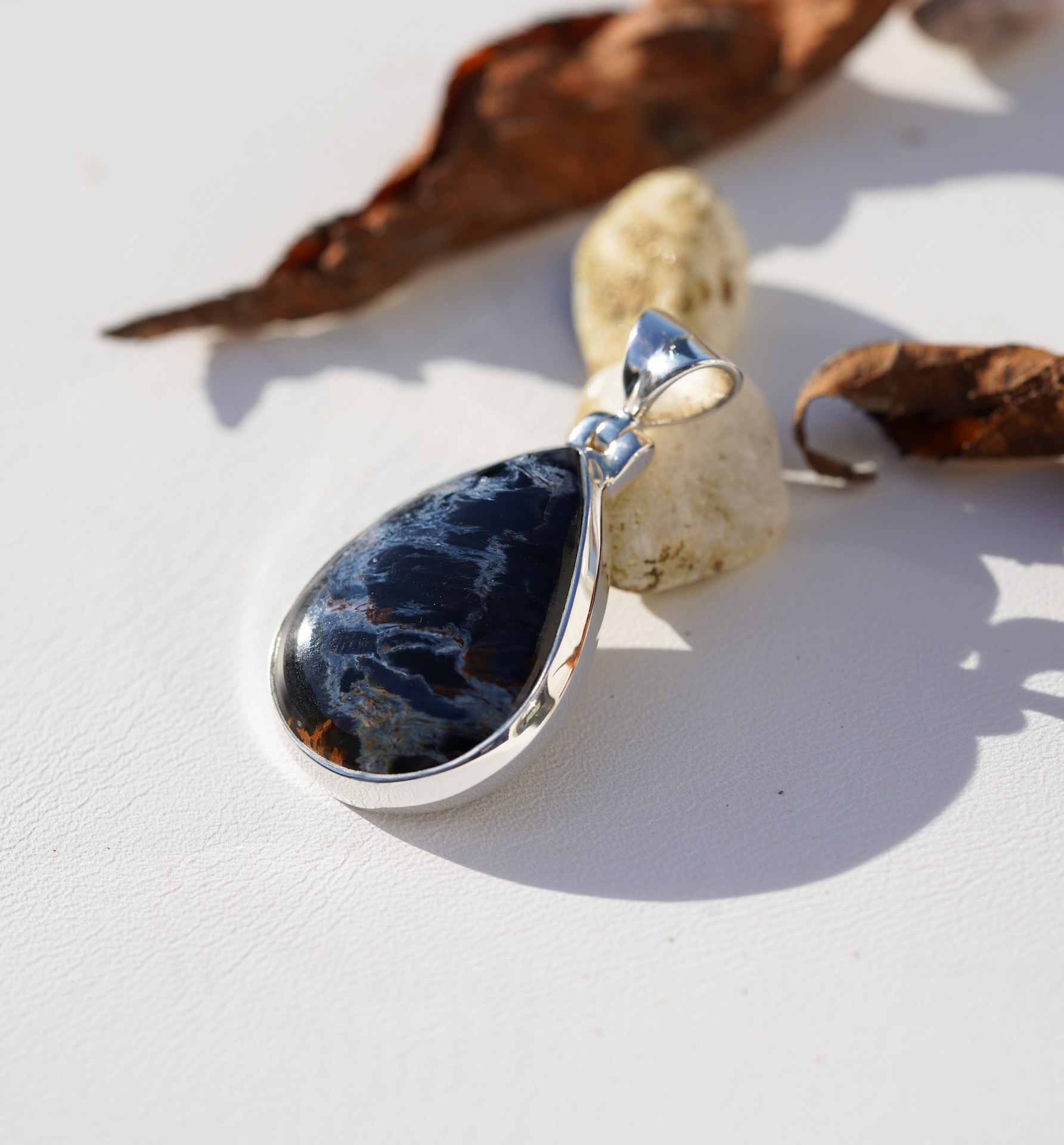 [726][마지막한점] 폭풍석 피터사이트 천연석 925 실버 물방울 펜던트_2x3.7cm