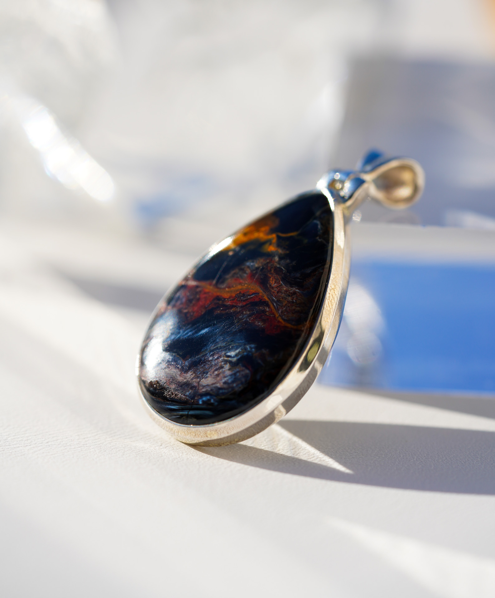 [728][마지막한점] 폭풍석 피터사이트 천연석 925 실버 물방울 펜던트_2x4cm