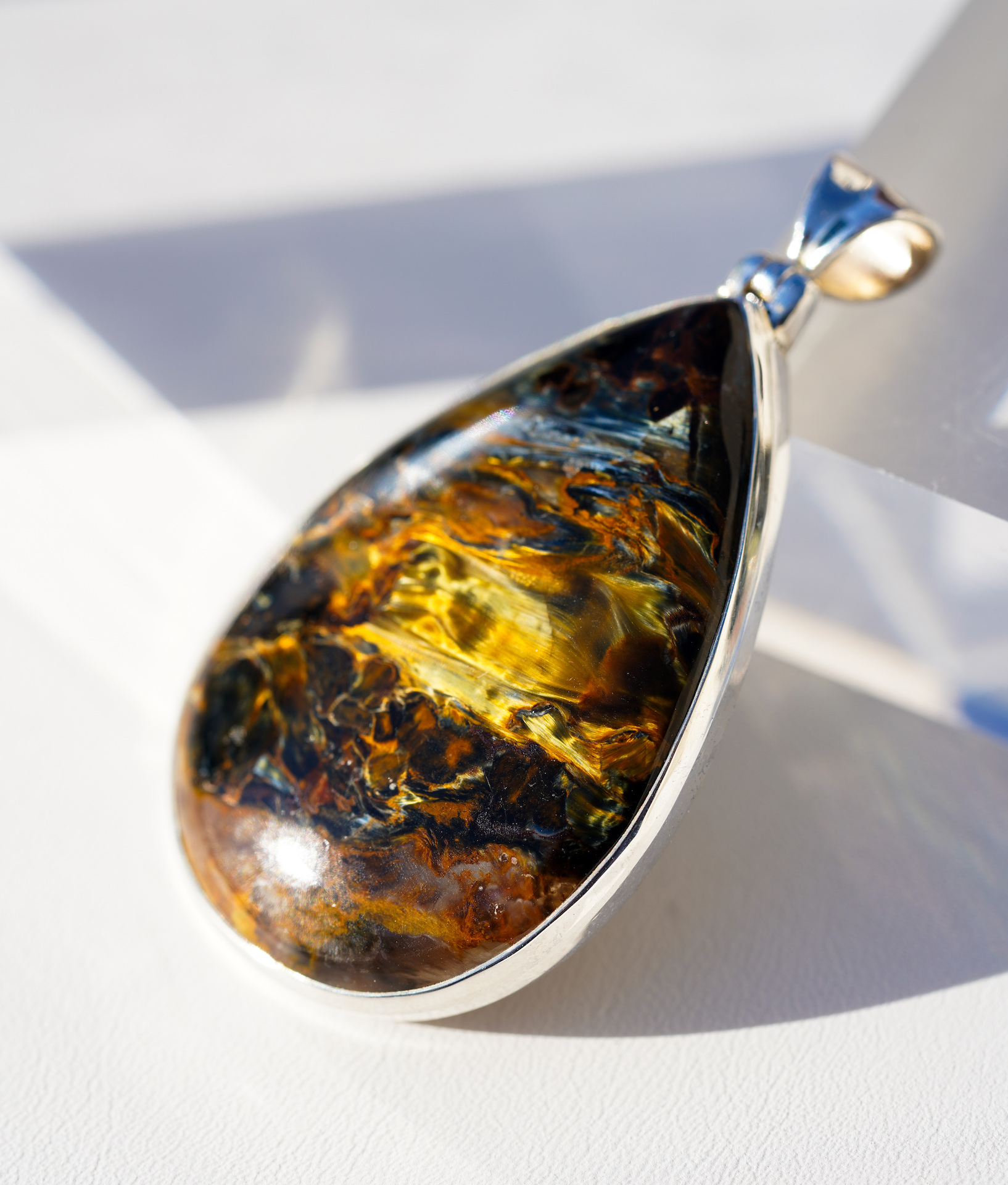 [729][마지막한점] 폭풍석 피터사이트 천연석 925 실버 물방울 펜던트_3.3x5.5cm